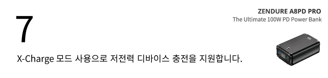 그리고 15W 포트의 경우 일반적인 디바이스의 충전을 지원하고, 저전력 모드를 필요로 하는 워치, 블루투스 이어폰 등을 충전하시려면 'X-Charge' 모드로 설정 후 충전하시기를 권장드립니다. (예를 들어 애플워치, 에어팟 등)