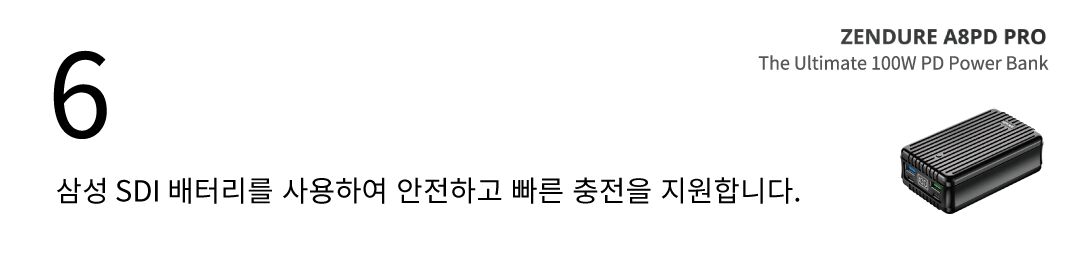 배터리에 대한 불신은 넣어두세요. 젠듀어 슈퍼탱크는 삼성 SDI 배터리를 사용하여, 더욱 안전하고 빠른 충전을 지원합니다. 아래 배터리에 대한 설명을 자세히 확인하세요.