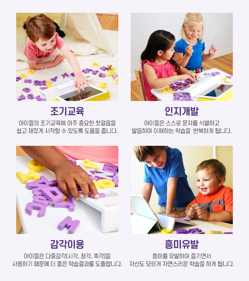 미국 현지에서 교구로 활용되며 아이들이 재미있게 놀면서 학습하는 것을 보고 우리나라에도 소개가 되면 어린 자녀를 둔 학부모들의 고민과 아이들의 영어학습에 큰 도움이 될 거라 판단하여 국내 독점계약을 체결하게 되었습니다.