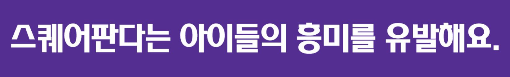 "스퀘어판다"의 매력도는 실제 경험해보지 않고서는 알 수 없습니다. 왜 아이들이 흥미를 갖고 스퀘어판다를 하는지 그 이유를 영상을 통해 살펴보세요.