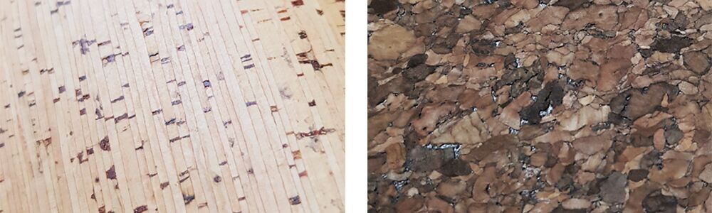 바로 기능성과 코르크 원단의 차이입니다. 저가의 코르크 깔창은 기능성이 없고 코르크를 잘게 부수어 압축한 뒤 얇게 슬라이스를 한 코르크입니다. 저렴한 와인 마개로 사용되는 바로 그 코르크입니다.