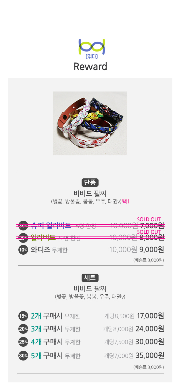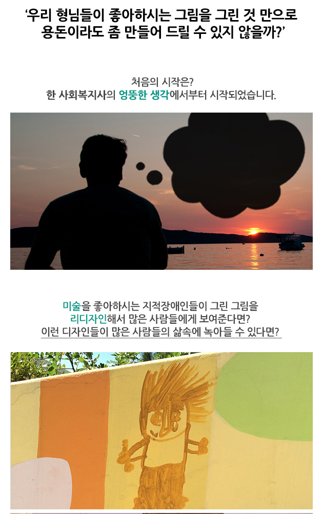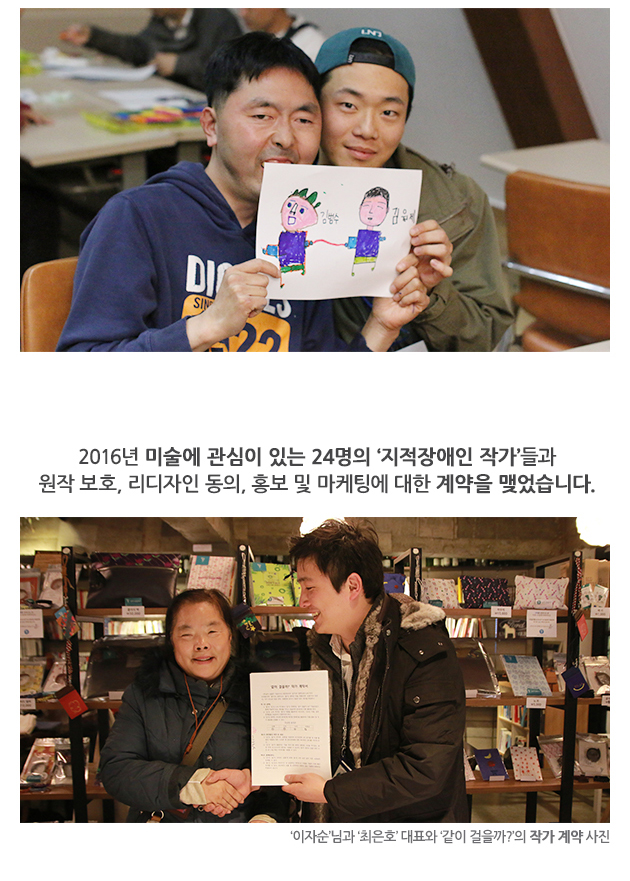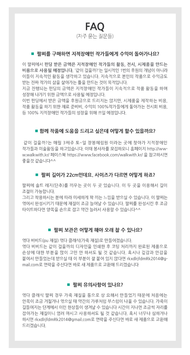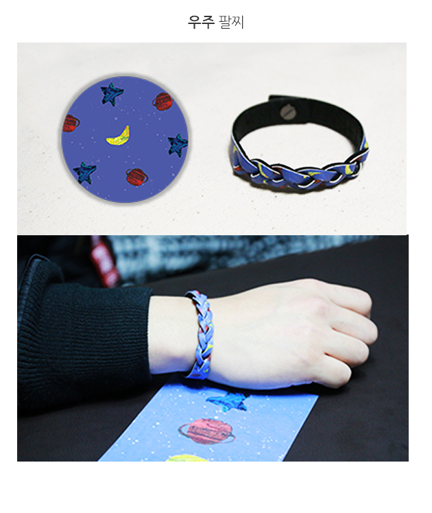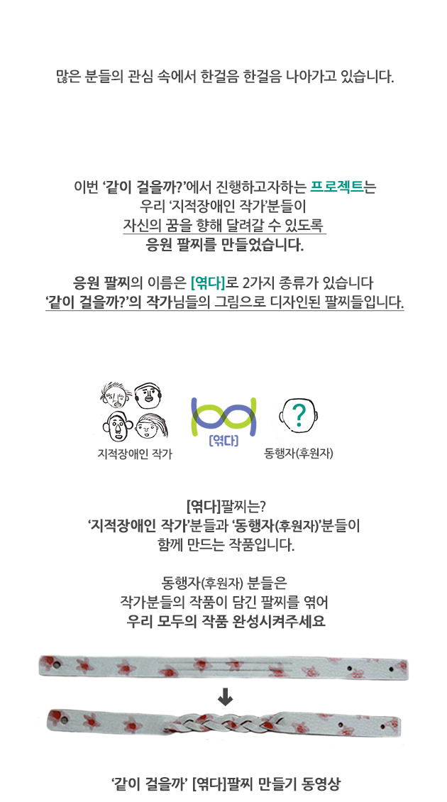 같이 걸을까?의 지적장애인 작가들의 작품이 담긴 팔찌로 지적장애인 작가들을 응원해주세요~ 같이 걸을까?는 함께만드는 예술을 컨셉으로 잡고있습니다. 함께 만드는 예술의 연장선으로 구매하시는 분들이 이 팔찌를 완성 시켜주세요^_^