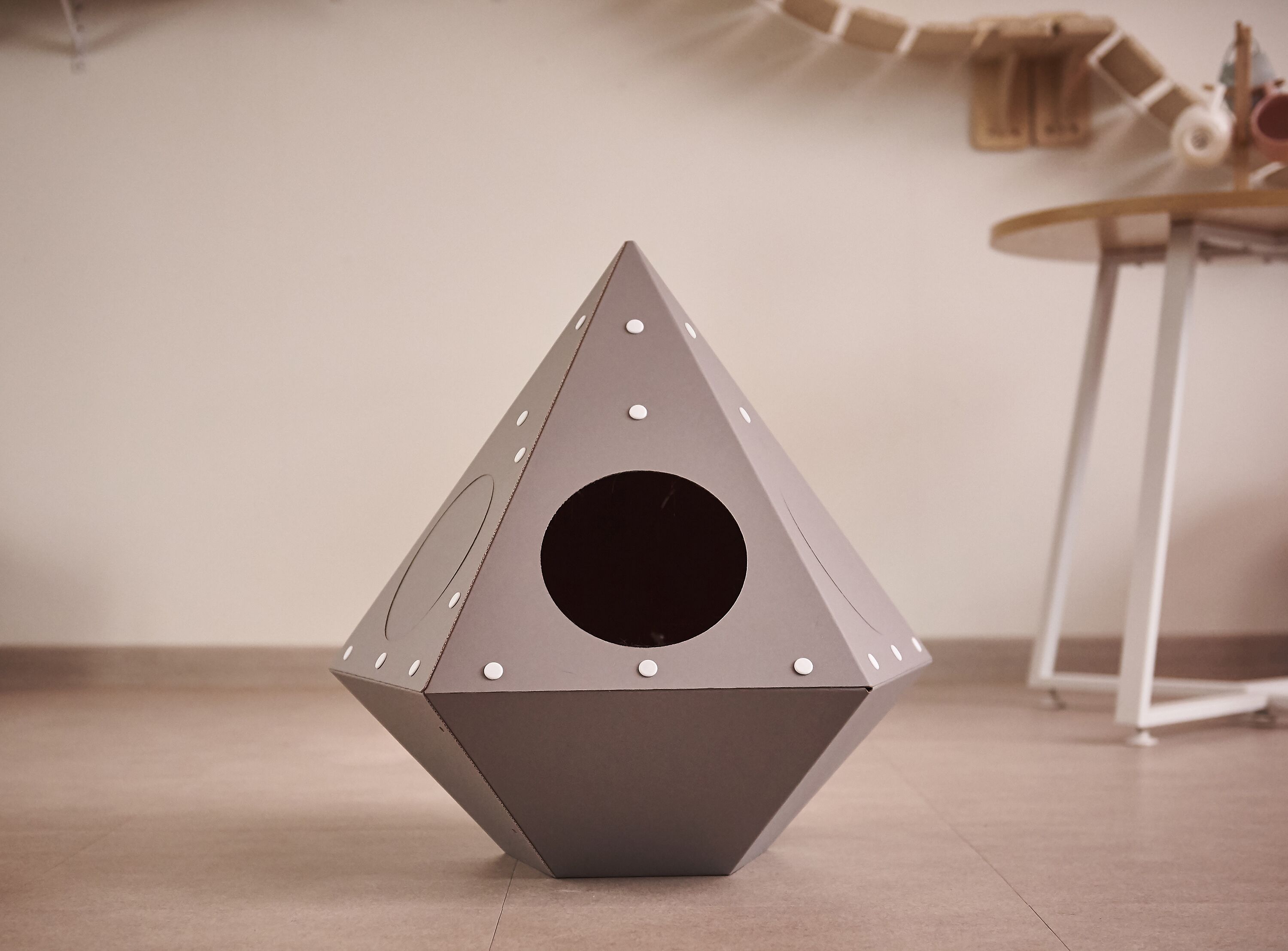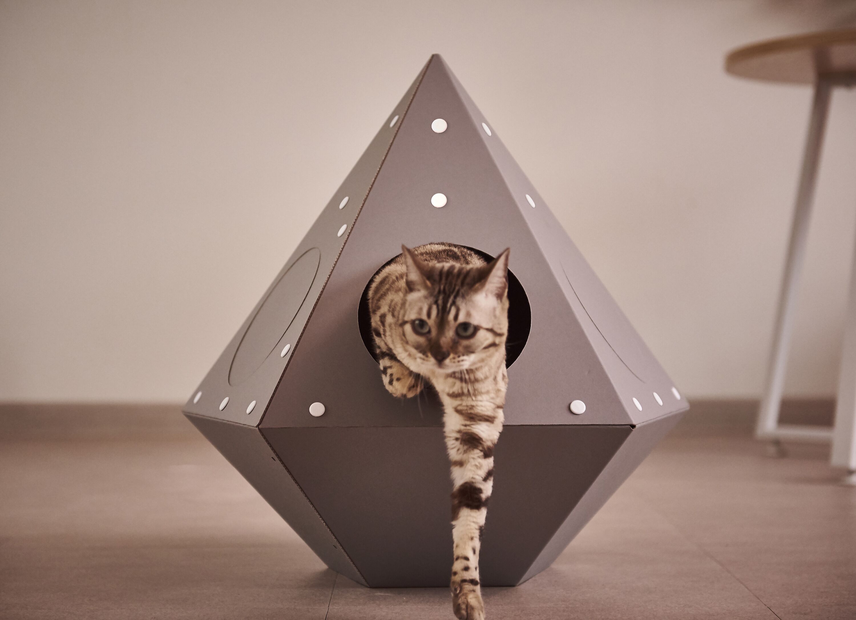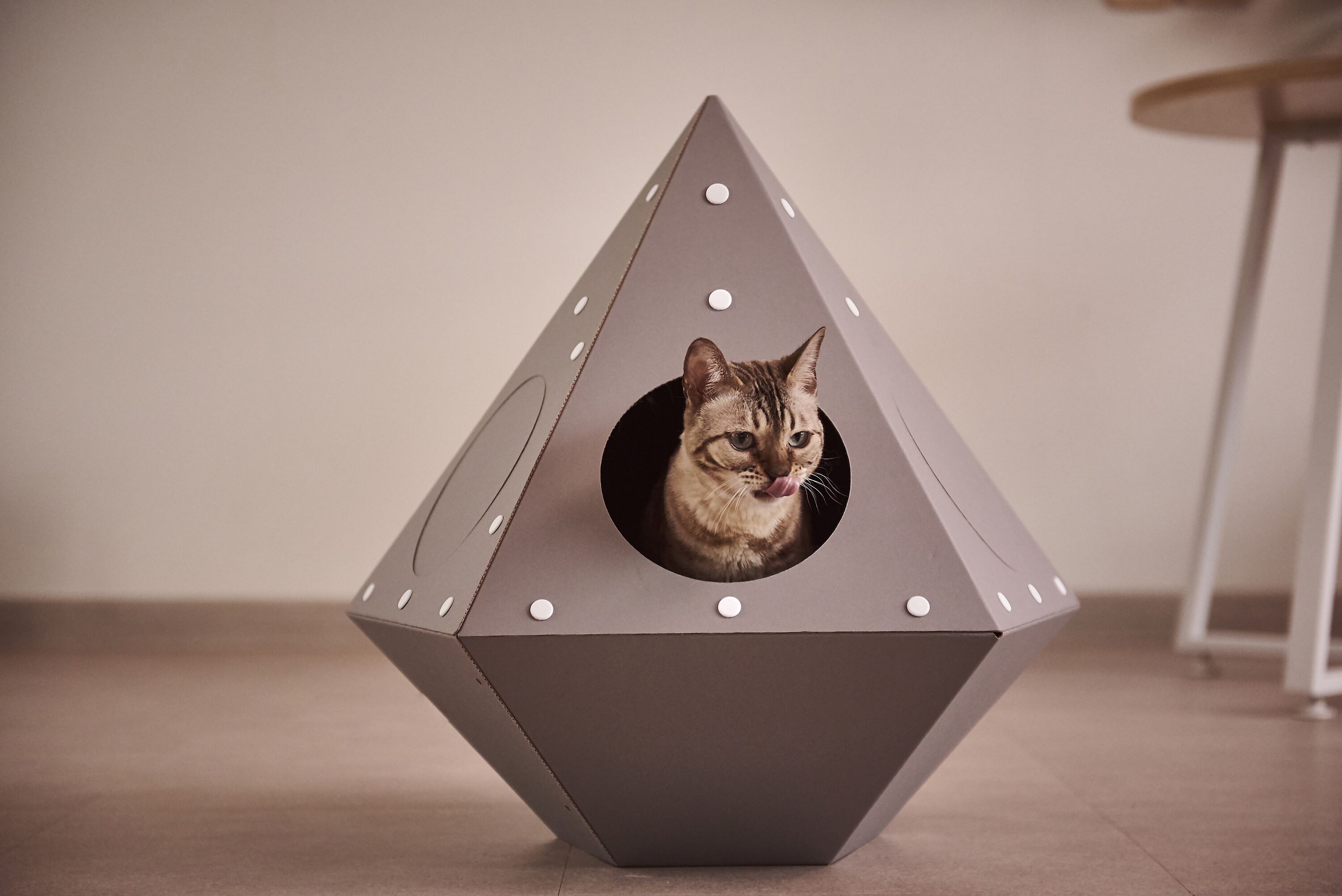 고양이의 스트레스를 줄여주고 체온 유지 & 안정감을 느끼게 해주는 종이 박스 재질. 가볍고 재활용 분리 배출도 OK !