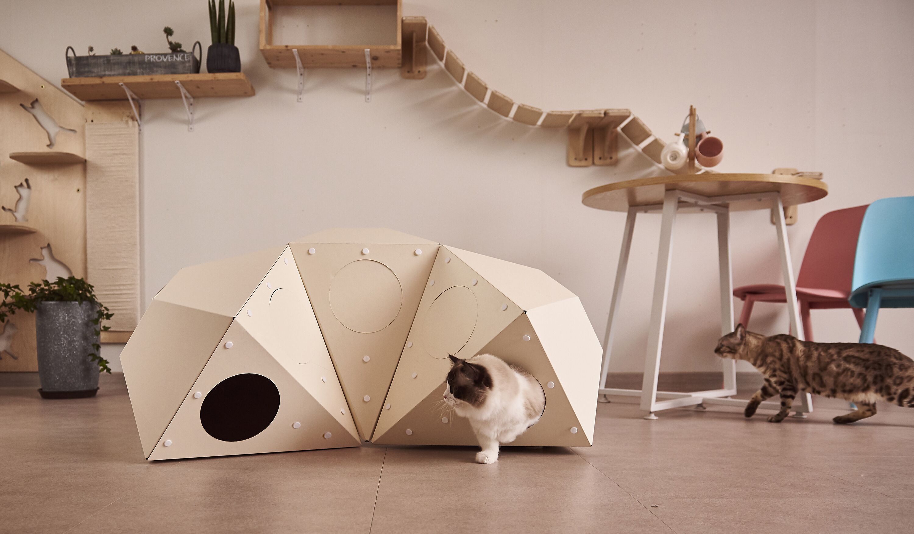 캣터널 형태로 고양이들이 자유롭게 드나 들며 이동할 수 있답니다.