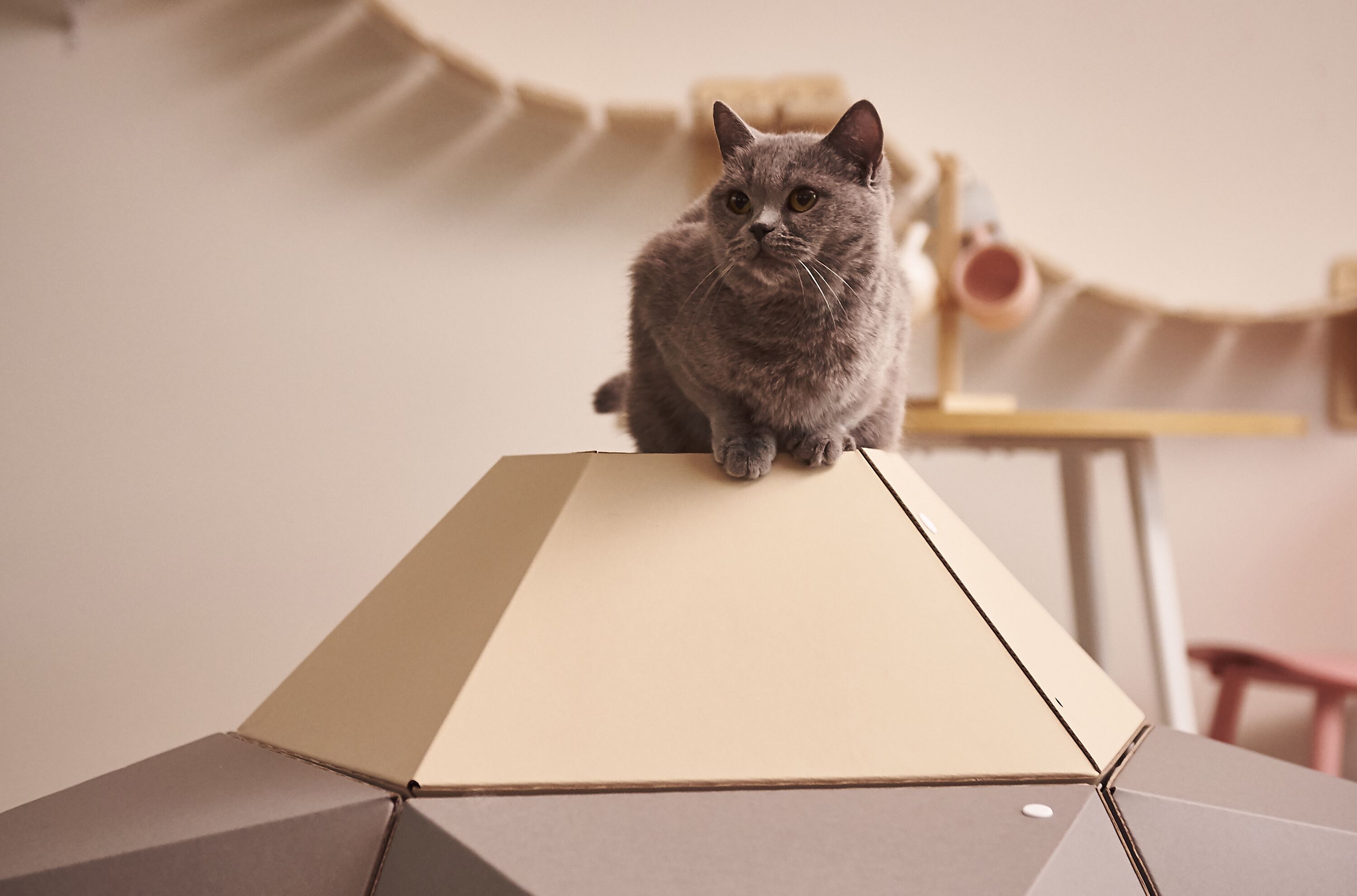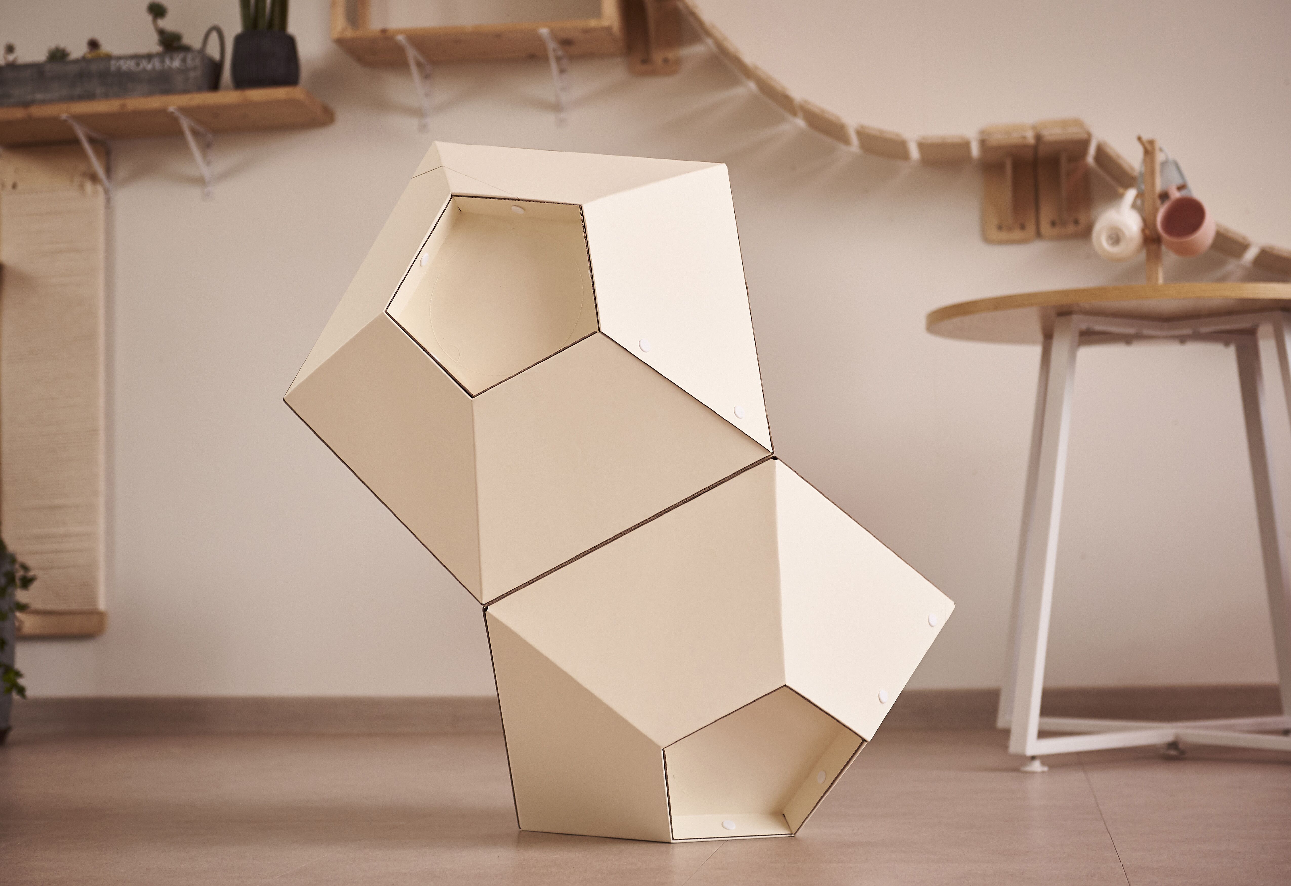 평평한 바닥을 위로 놓아주면 높은 곳을 좋아하는 고양이들이 앉아서 아래를 내려다볼 수 있는 좋은 쉼터, 캣타워가 된답니다.