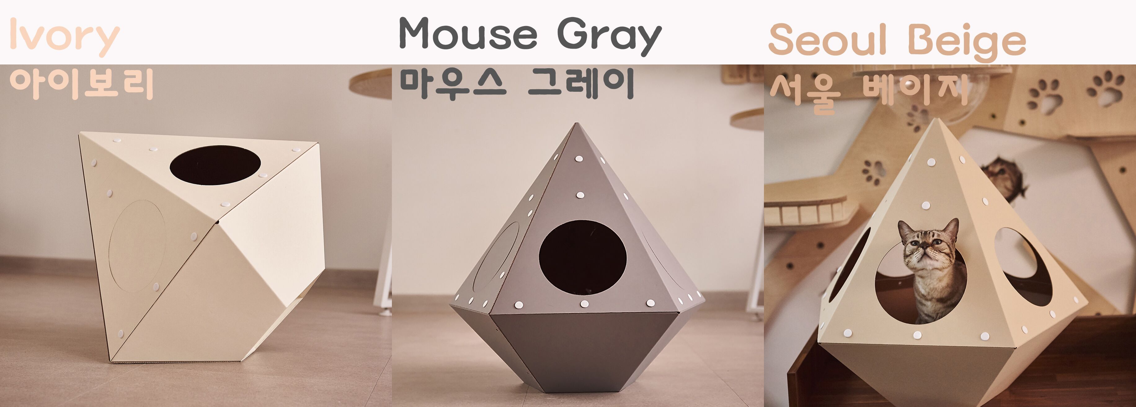 목재, 철재, 플라스틱 등등 분리 배출이 어려운 캣타워, 캣하우스 등과 달리 종이 분리 수거함에 배출할 수 있는 종이 박스 재질입니다.