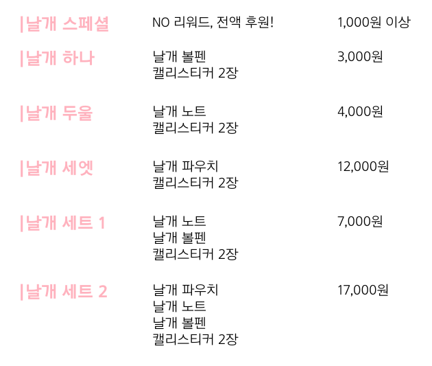 배송비는 리워드별로 아래와 같습니다.
