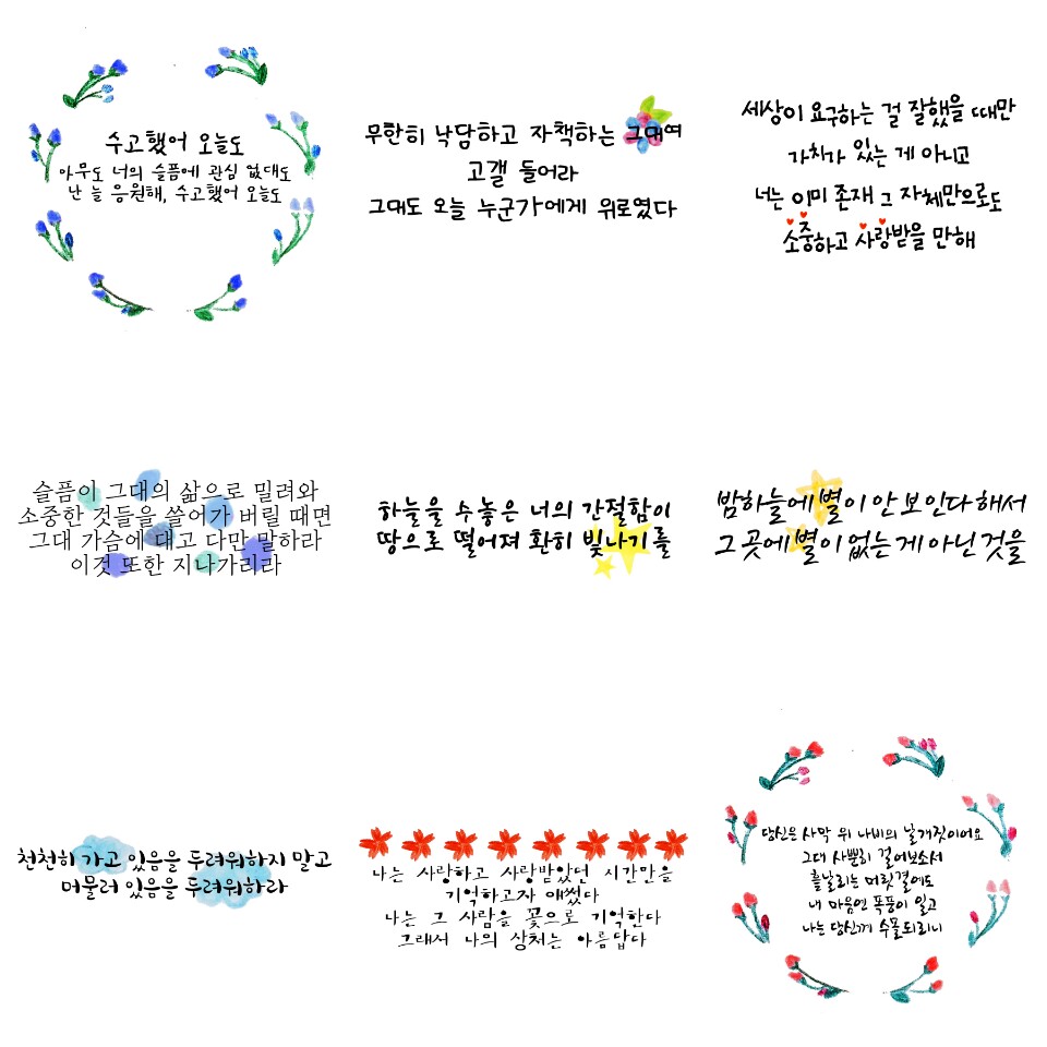 캘리그라피 응원 스티커는 친구들을 응원하는 마음을 실어 좋은 글귀들을 담고 있어요!