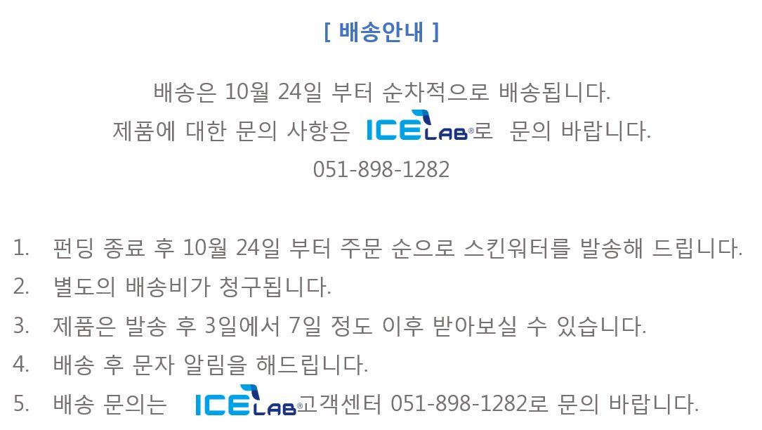 * 스킨워터대한민국 (주)ICE lab에서 직접 개발, 생산한 제품입니다.