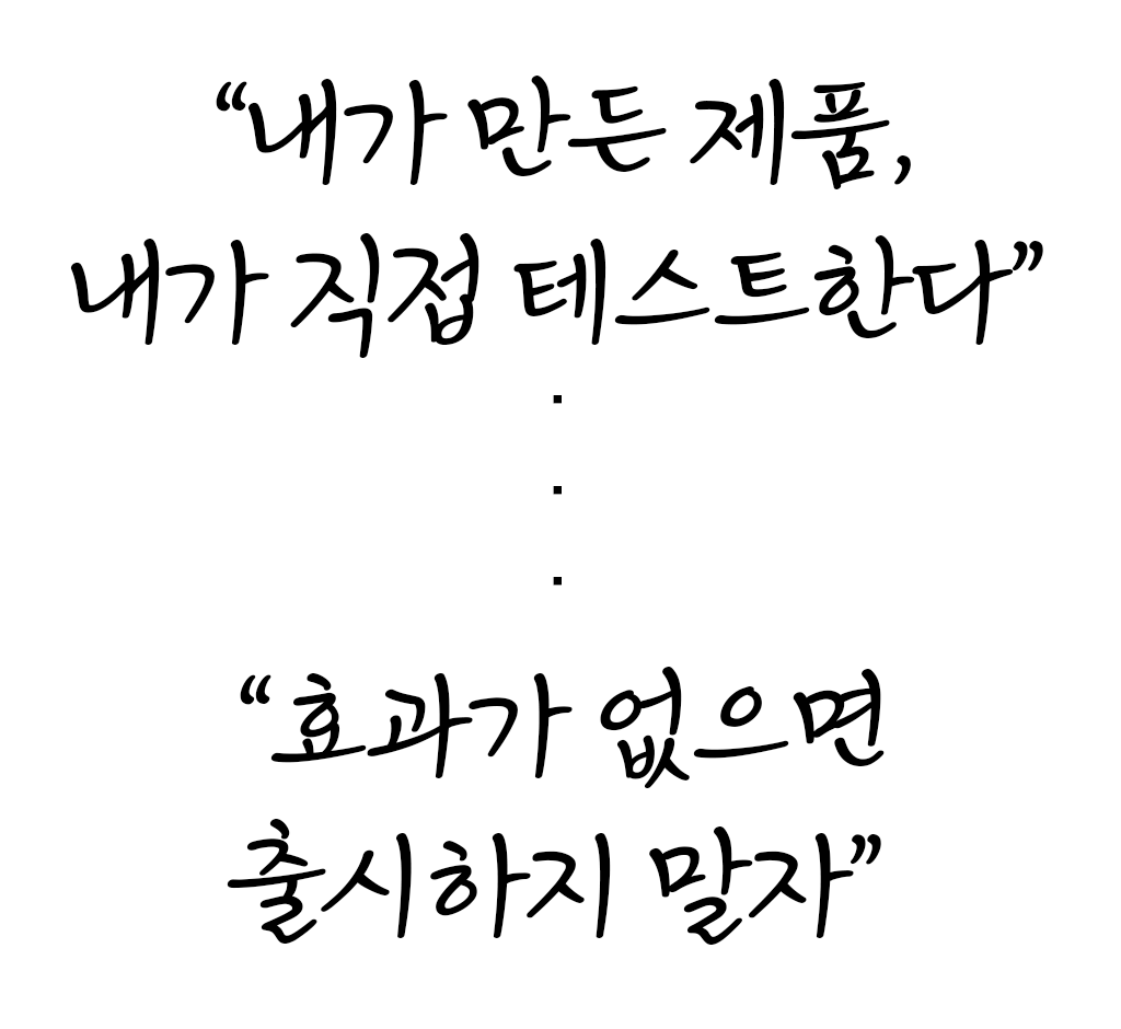 서포터님들의 피부를 위해 노력하고, 부끄럽지 않은 제품으로 보답하겠습니다.