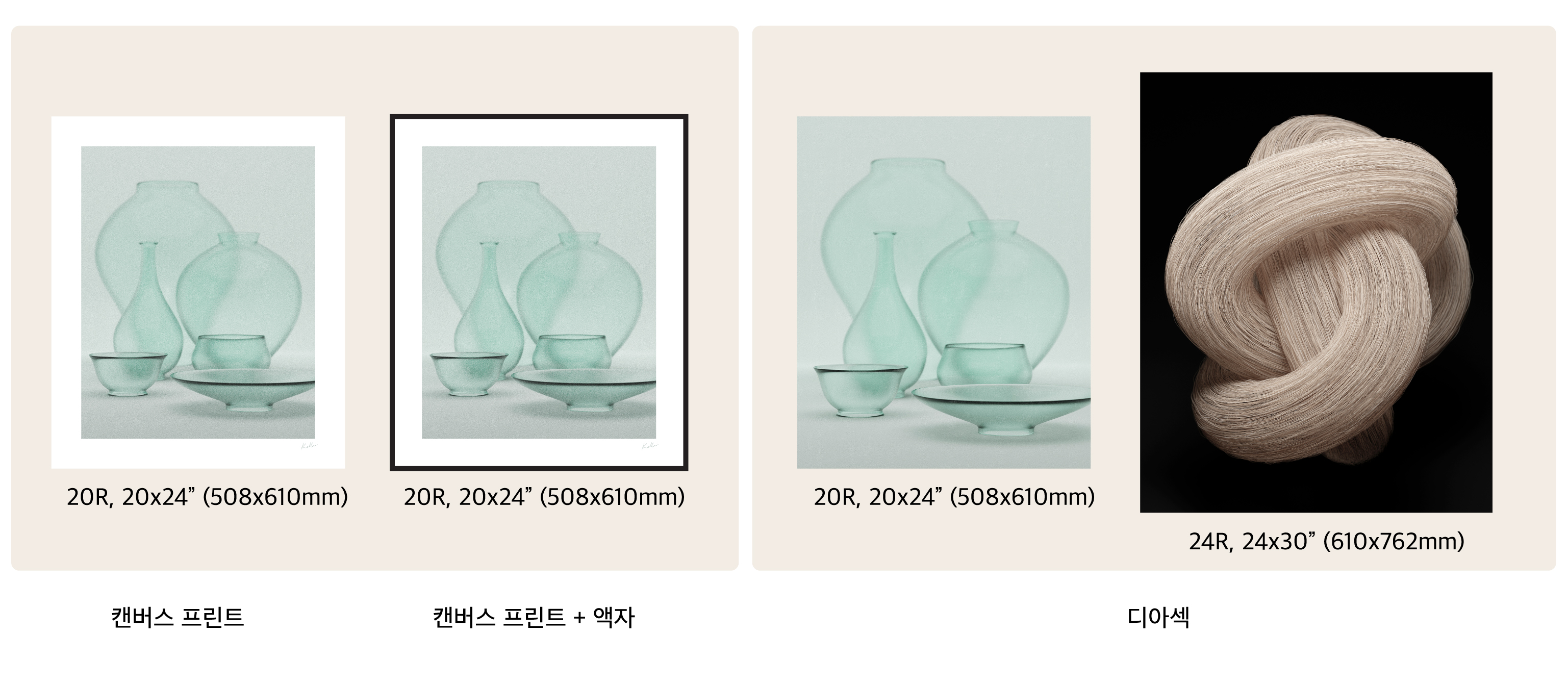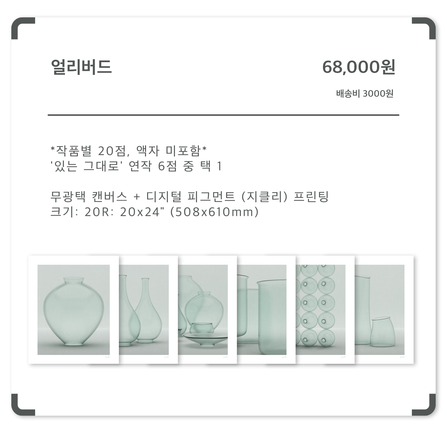 '있는 그대로' 연작은 캔버스, 디아섹 모두 20x24" (508x610mm) 이며,