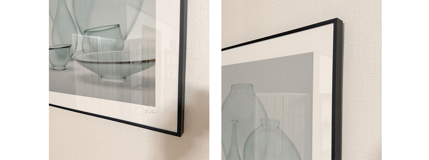 얇은 무광택 블랙 테두리와 22mm 의 두께감으로 작품에 입체감을 더해줍니다.
