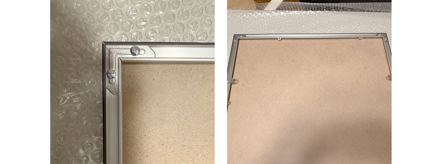 실제 촬영한 알루미늄 액자 포함 리워드의 모습입니다.
