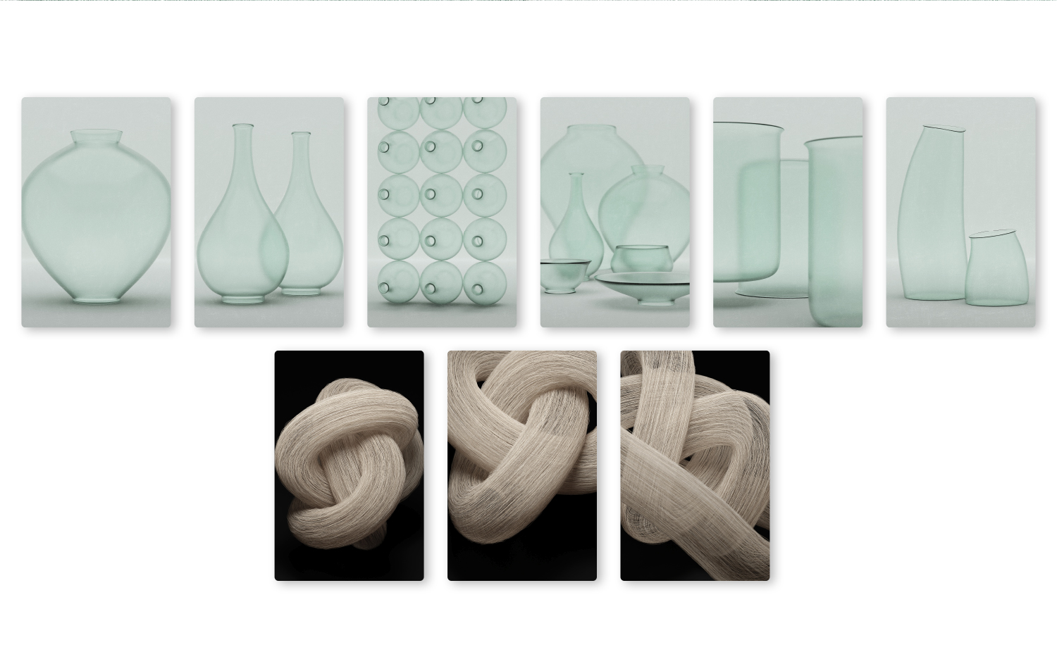 대부분의 작품은 3D 모델링과 렌더링을 통해 생성된 이미지를