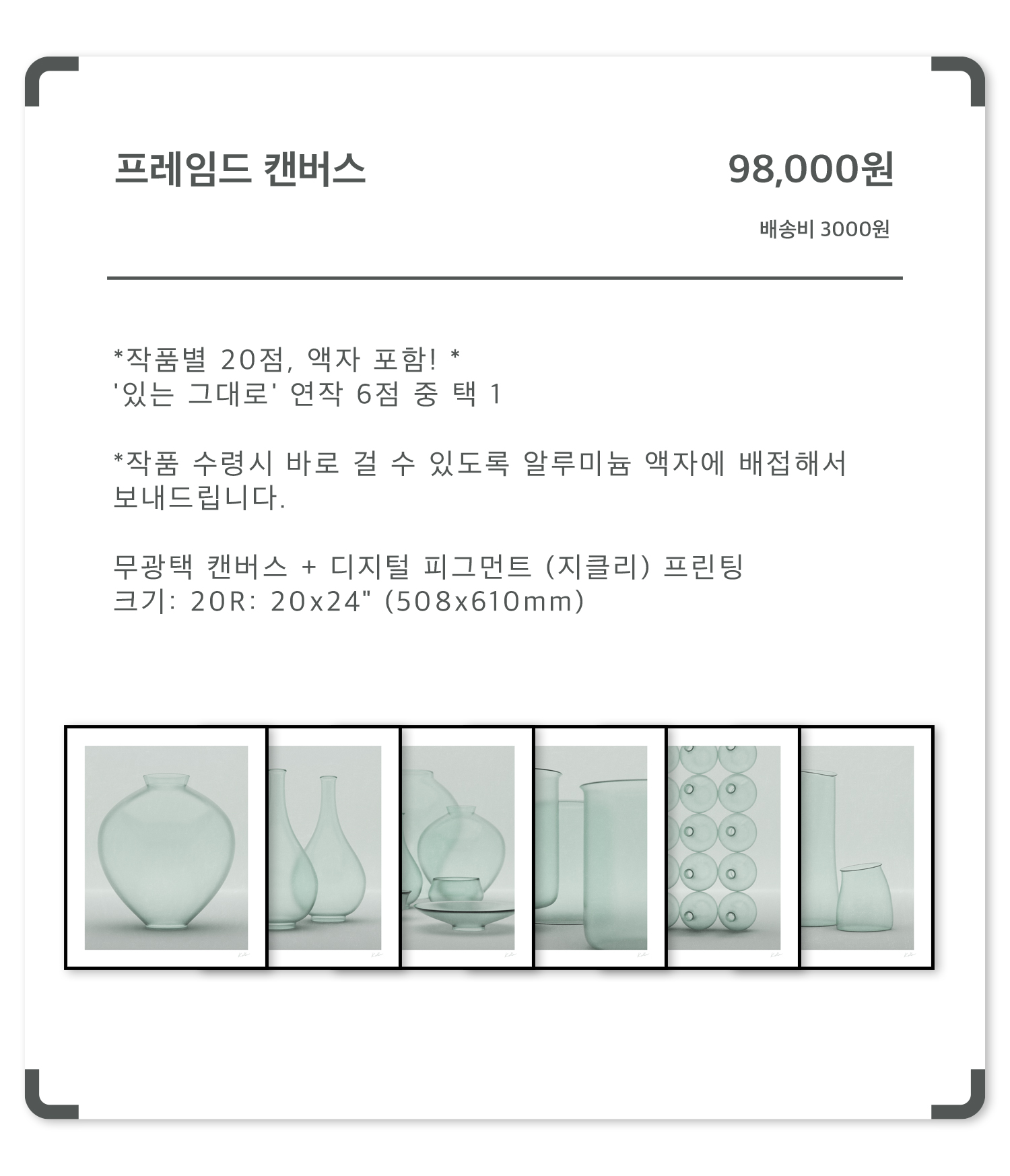 캔버스만 선택하실 수도 있고, 액자가 포함 된 리워드도 선택 가능합니다.