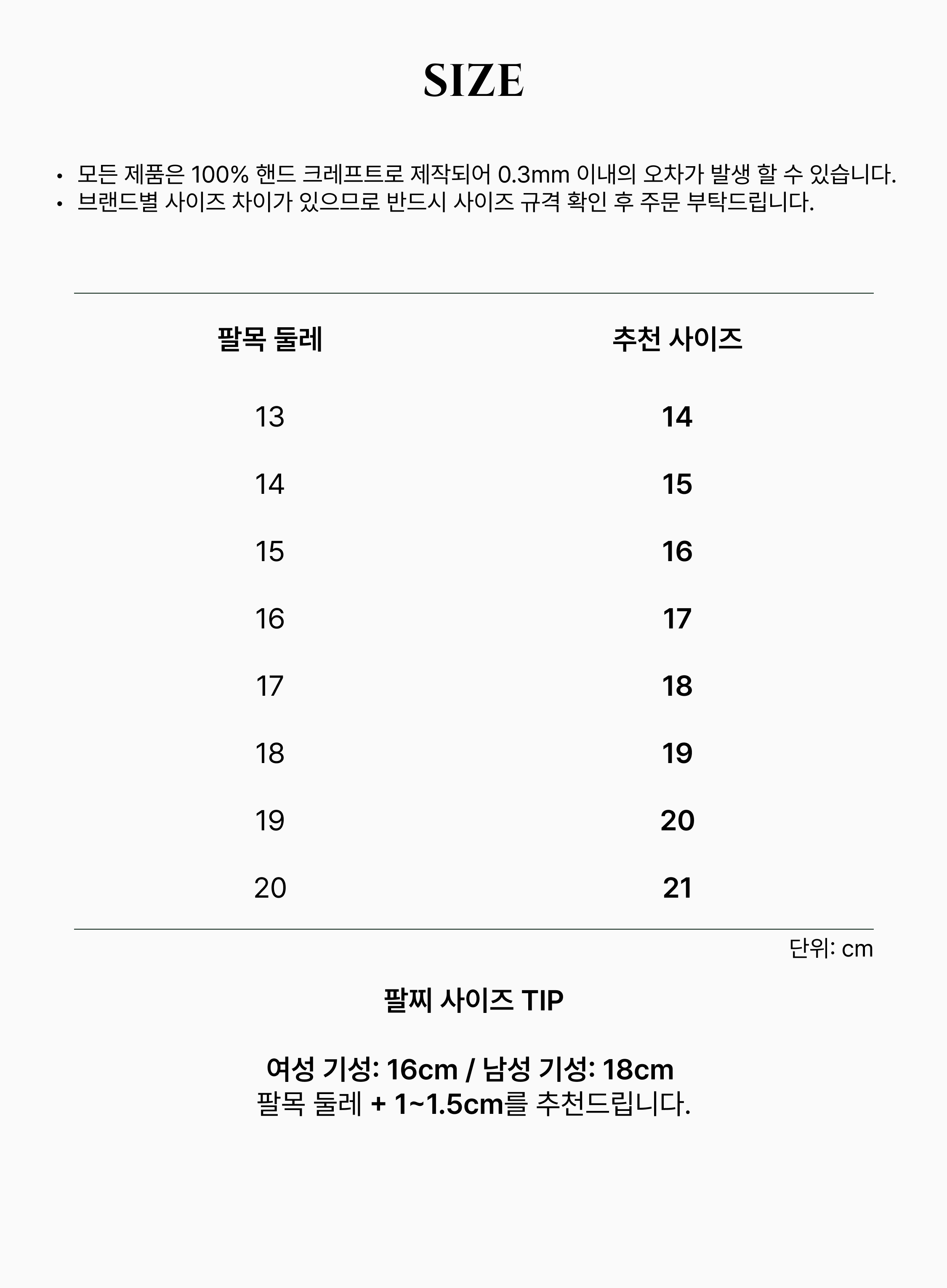 아래 측정법은 대략적인 손목 둘레를 측정하는 간단한 방법으로 완벽한 치수는 알 수 없습니다.