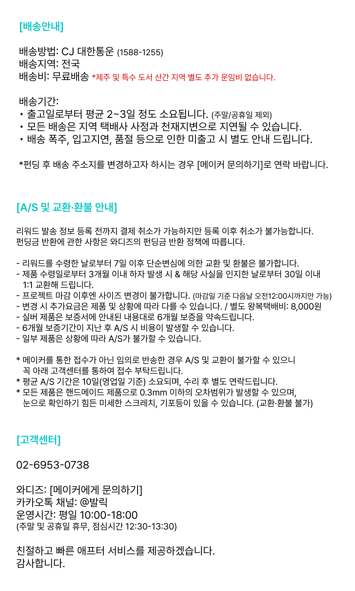 기타 궁금한 사항은 [메이커 문의하기]를 통해 문의해 주시면 빠르게 답변드리겠습니다 :)