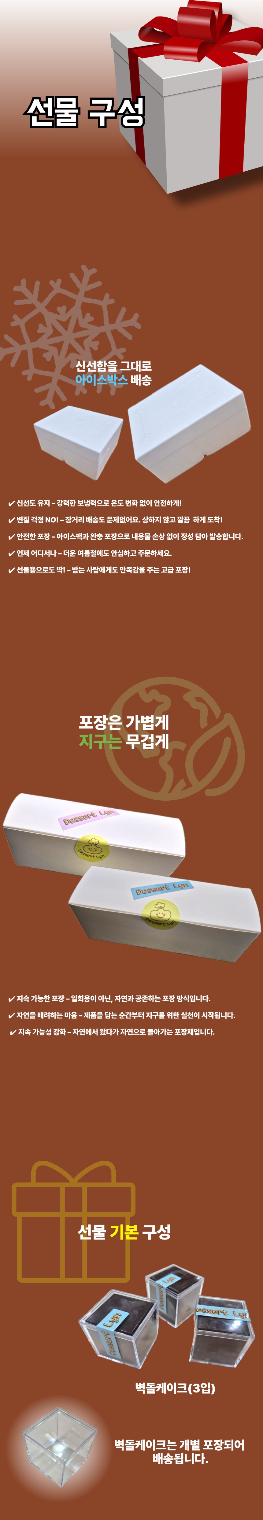 한 세트에 3개의 벽돌케이크가 정성스럽게 담겨 있으며,