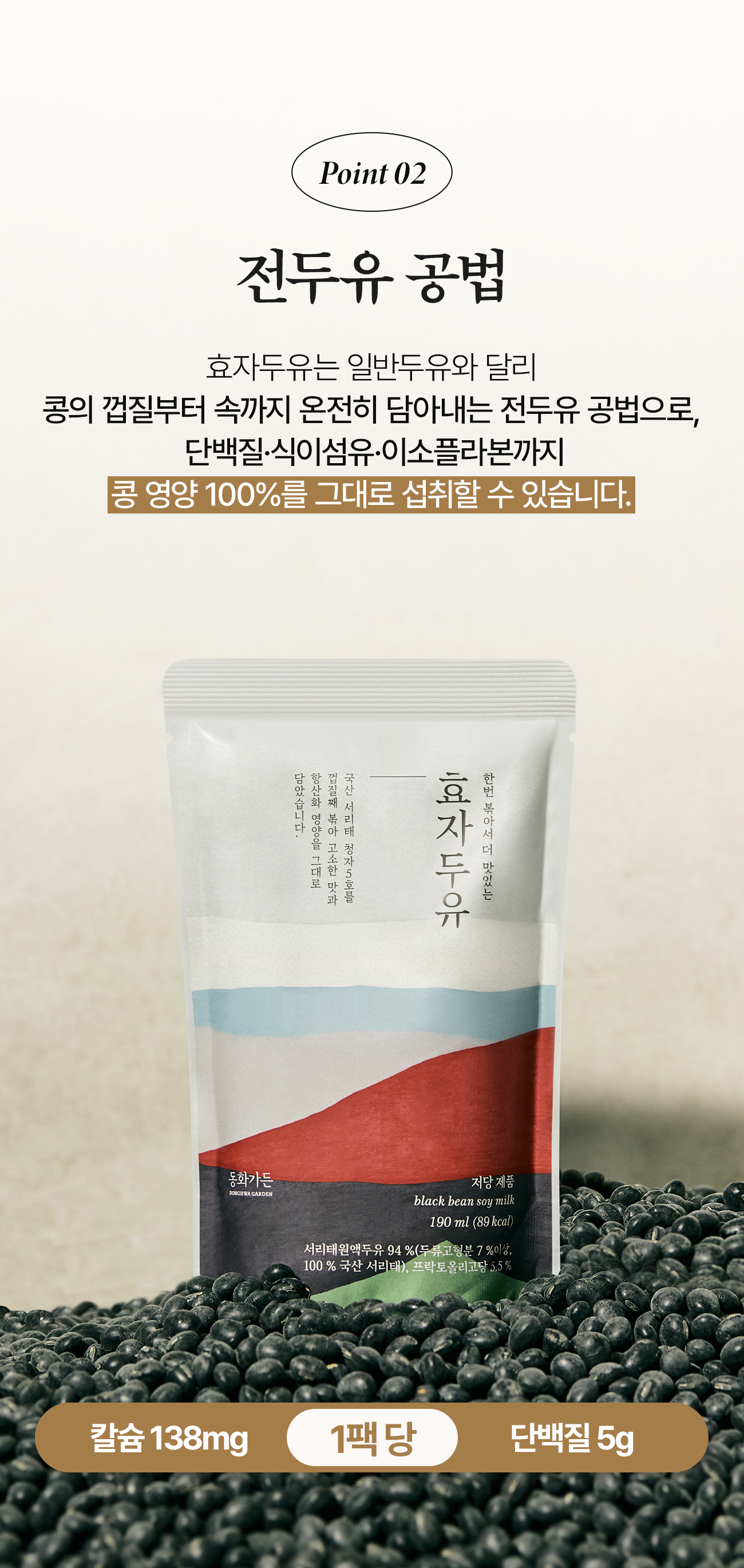 1. 🥛 비린맛 없는 건강 서리태 두유 - 로스팅한 서리태로 비린맛 제거, 풍미와 영양 흡수율 향상 2. 🌱 30년 노하우 콩 가공 기술 - 동화가든의 오랜 경험으로 맛과 건강을 동시에 개선 3. 🎁 한팩에 칼슘 138mg 함유 - 영양 보충에 좋은 칼슘과 단백질을 간편하게 섭취 가능