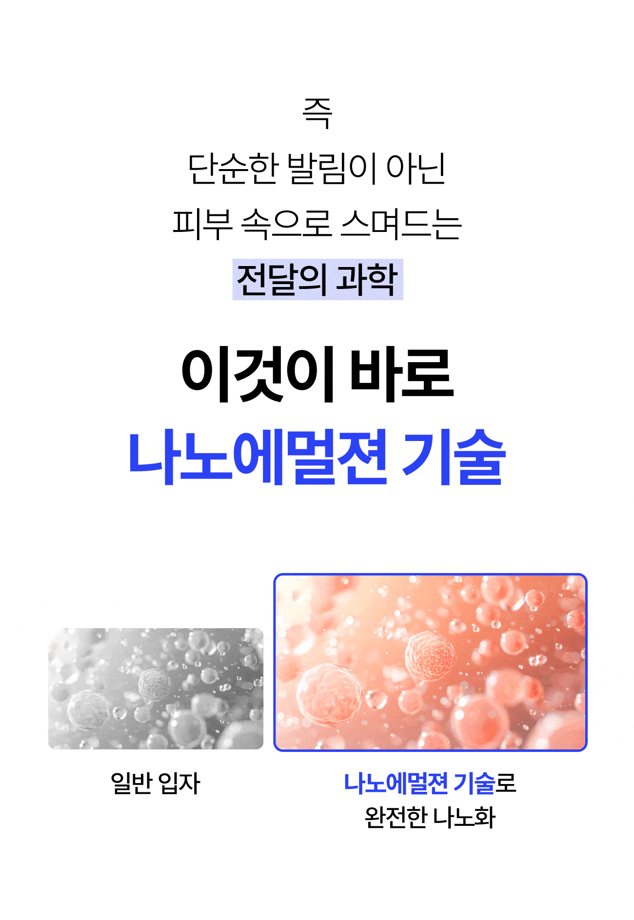 A. 나노에멀젼화 기술로 성분이 빠르게 흡수되어 겹쳐 발라도 밀림이나 무거움 없이 가볍게 사용할 수 있습니다.