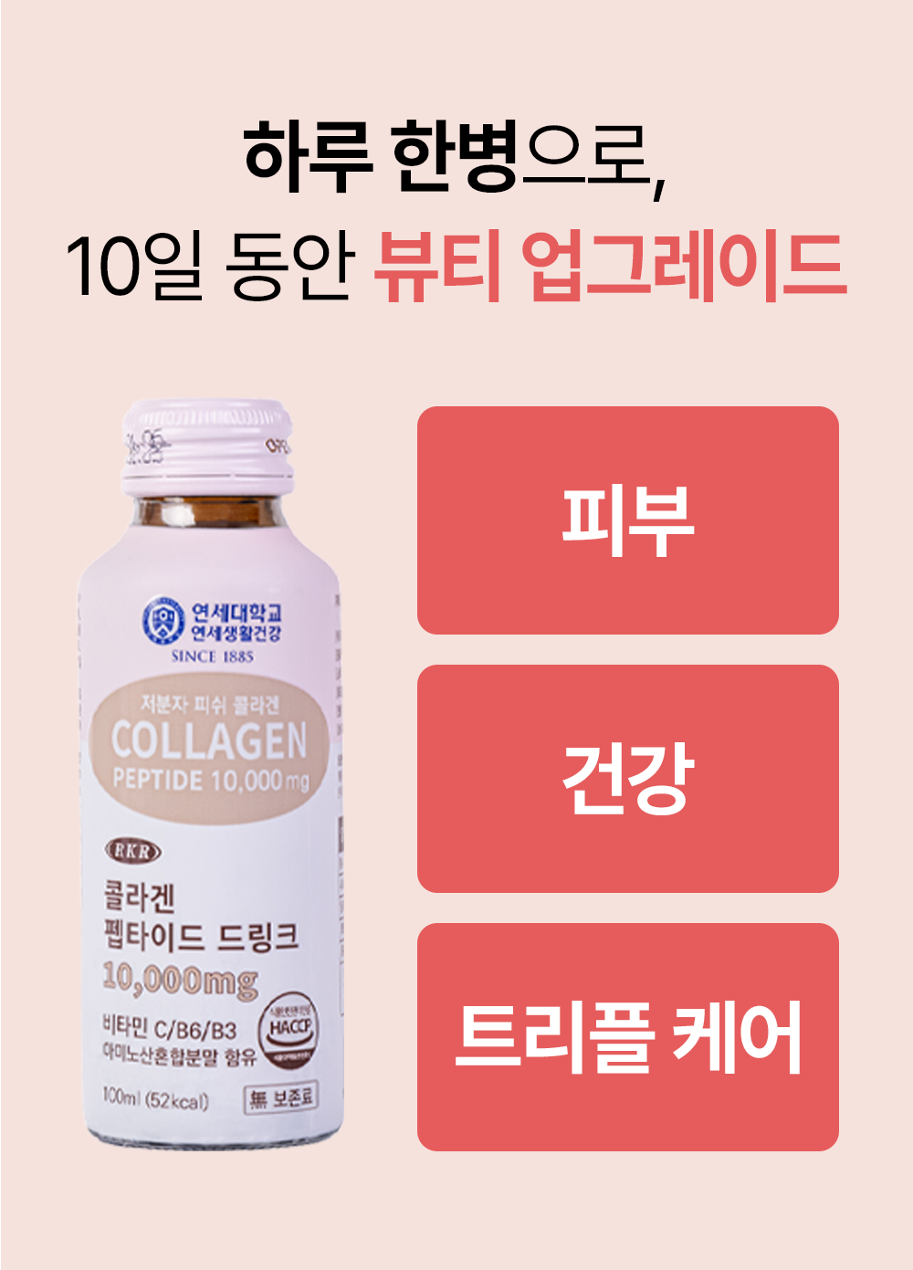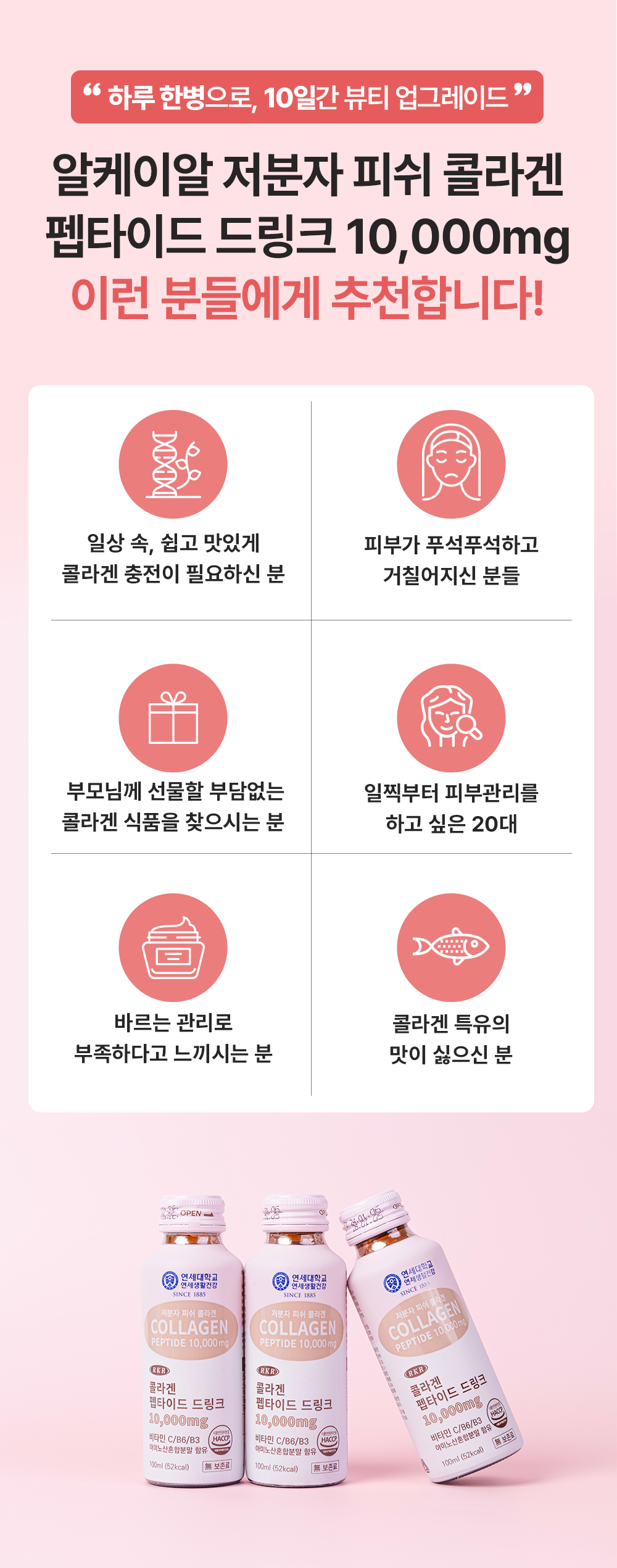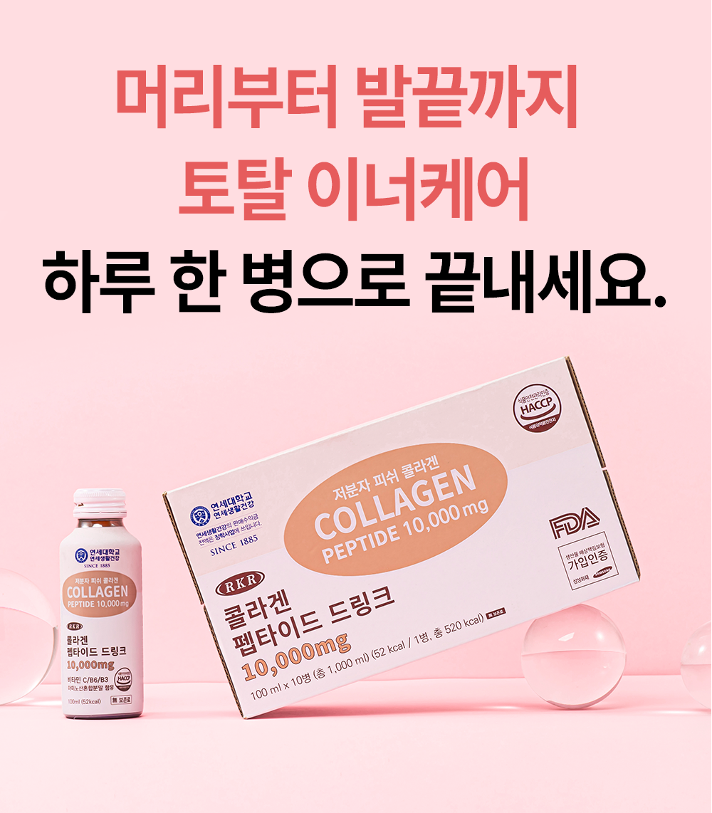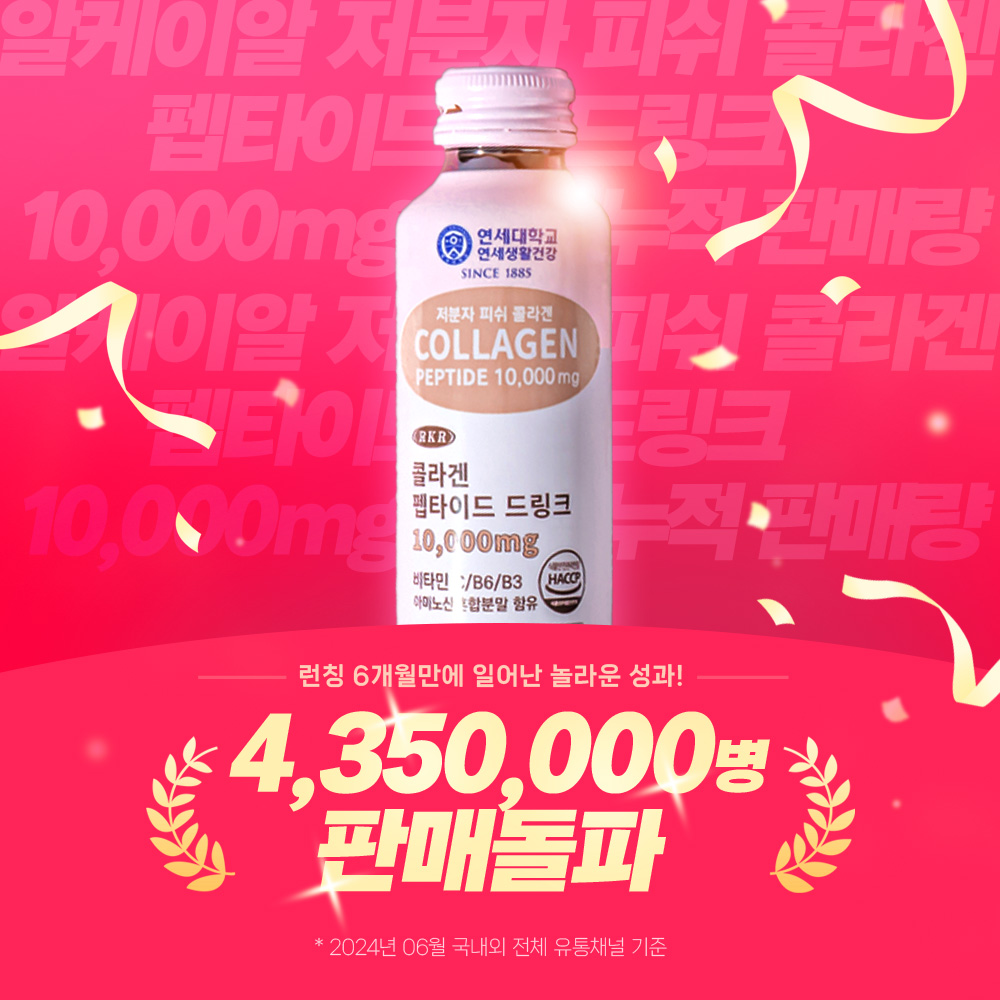 연세생활건강 X 알케이알 저분자 피쉬 콜라겐 펩타이드 드링크 10,000mg로 건강과 아름다움을 한번에! 매일 하루 한 병으로 뷰티 업그레이드 하세요!