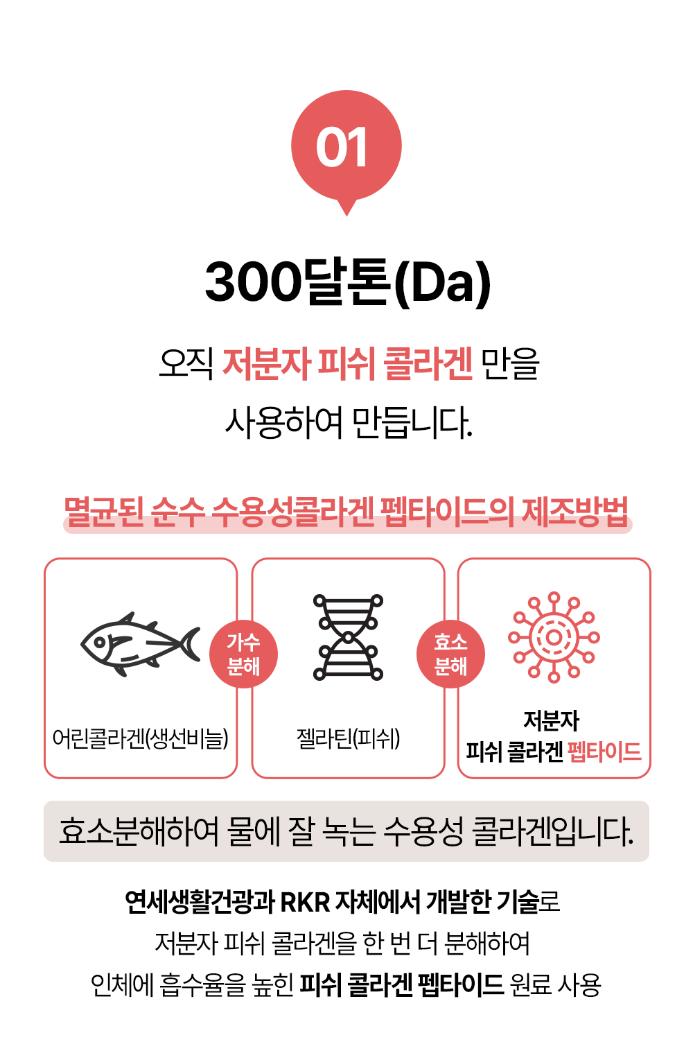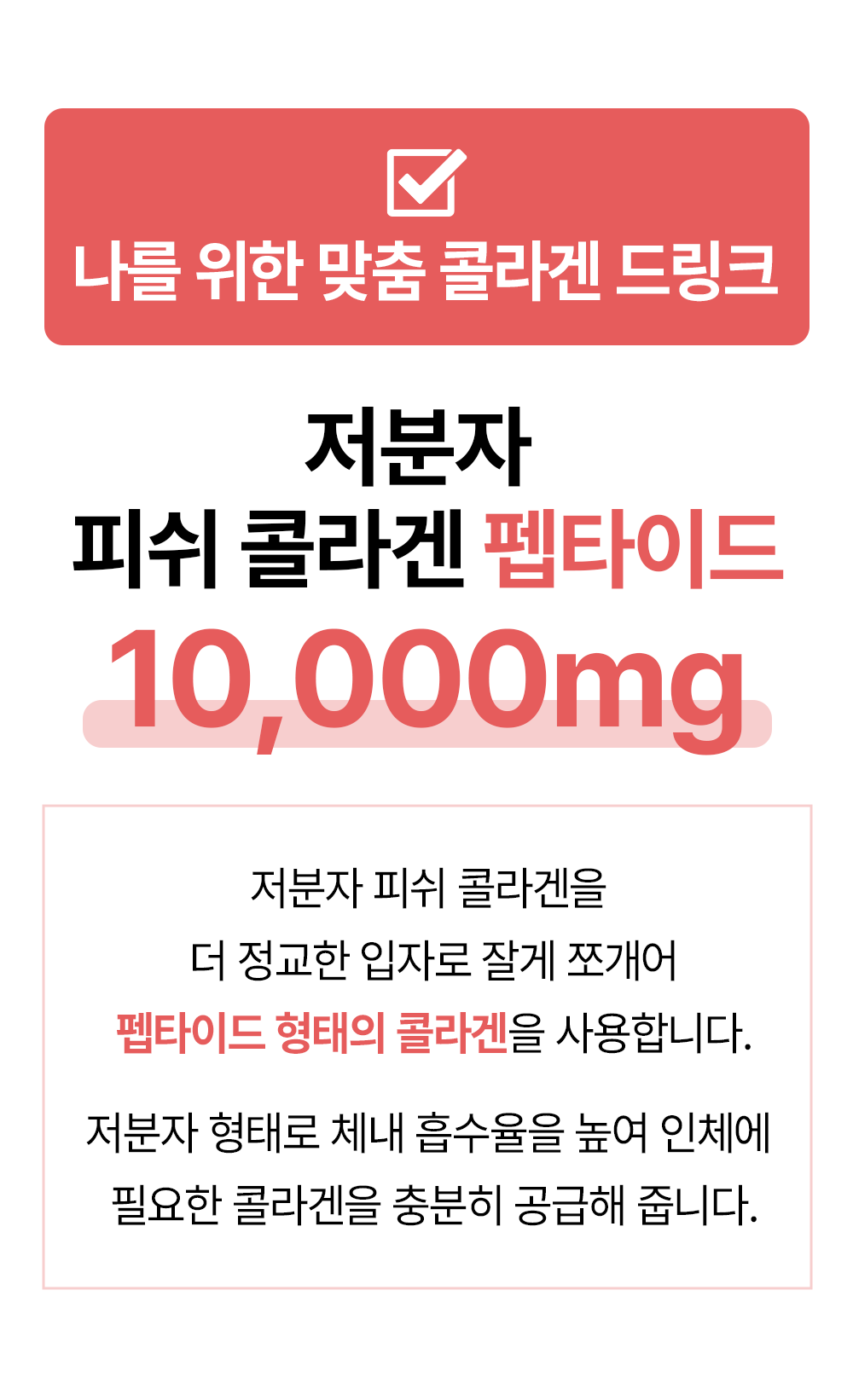 - 300달톤 콜라겐을 한 번 더 분해하여 체내 흡수율 UP