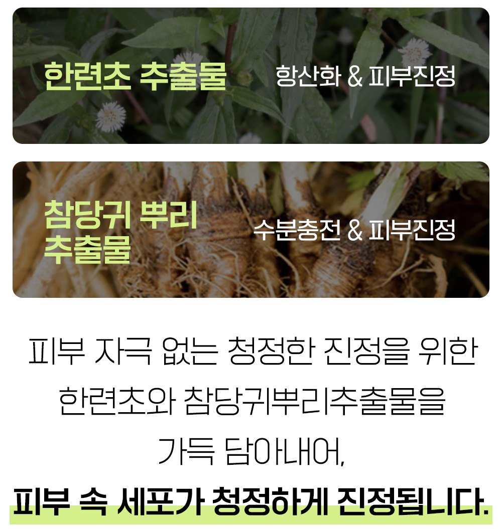 선별하여 즉각적인 피부 진정이 가능하도록 설계 했습니다.