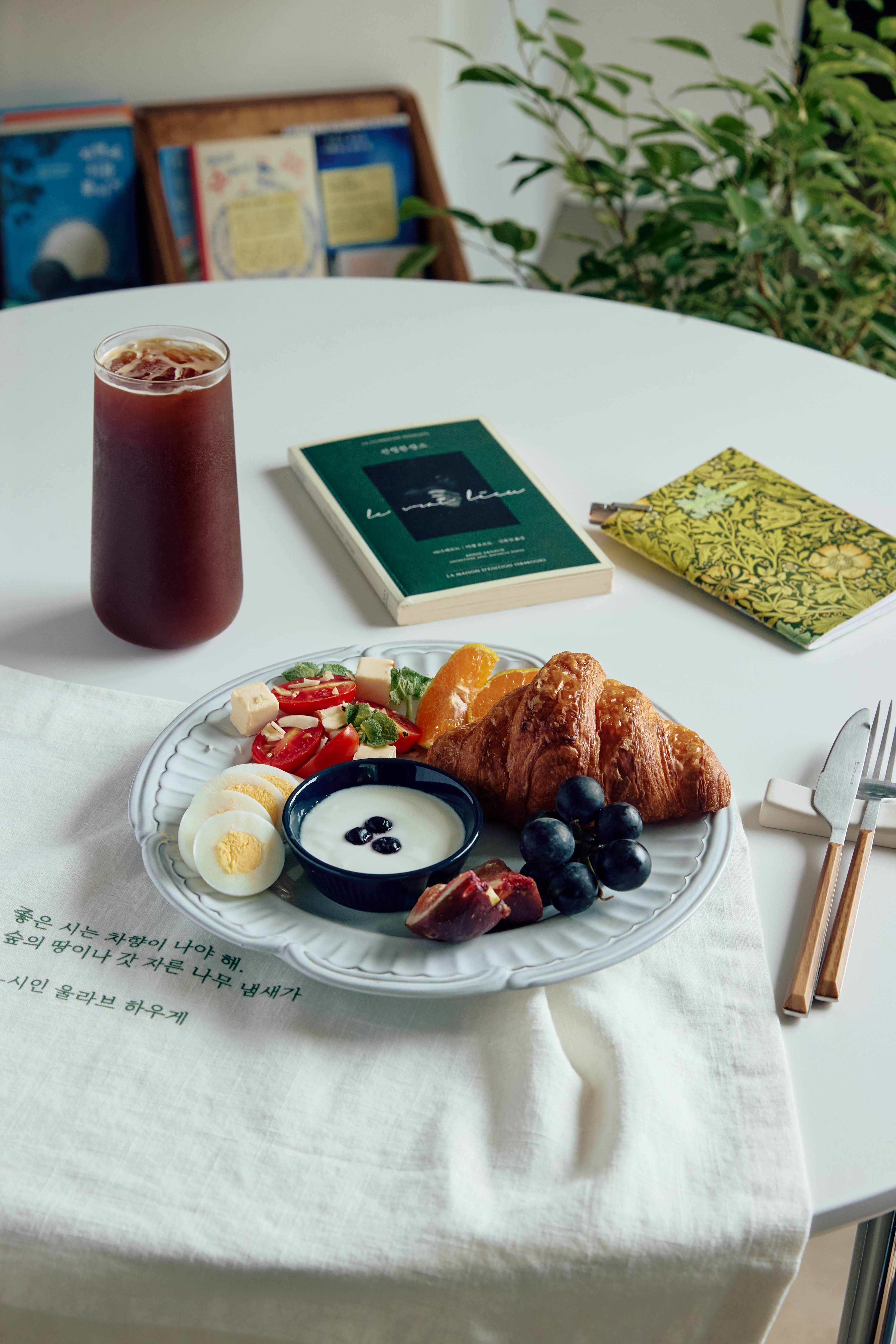 *필사와 함께하는 브런치 : 크루아상, 요거트, 제철과일, 커피 또는 티 포함
