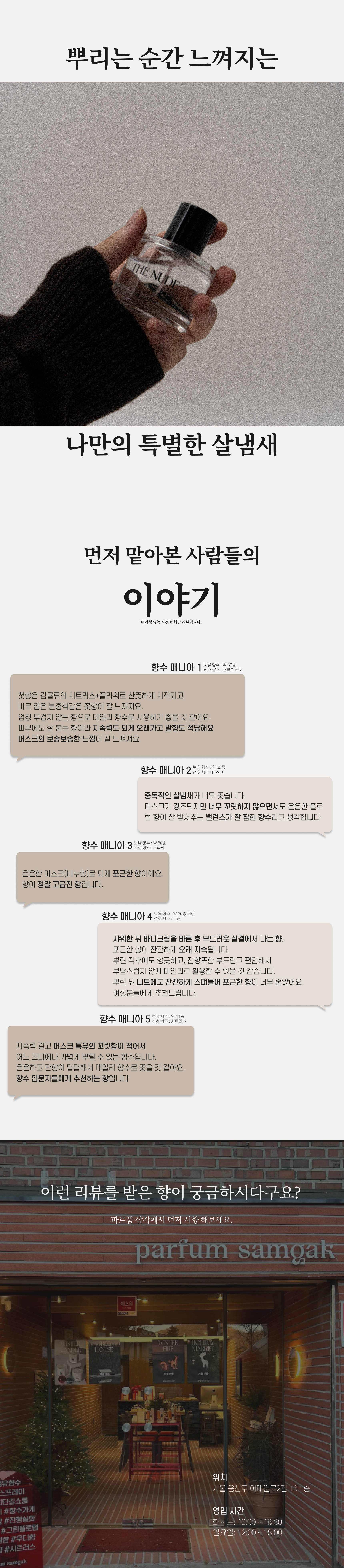 1. 🌿 10일 이상 지속되는 살냄새 향수 - 10일 이상 지속되는 미친 살냄새 향수 경험 제공 2. 🛡️ 유해물질 없는 안전한 향수 - 프탈레이트 프리, 프리미엄 향료로 안전성과 지속력 확보 3. 🎁 할인 및 다양한 세트 구성 - 트리플, 더블, 싱글 세트 할인 및 특별 구성 제공