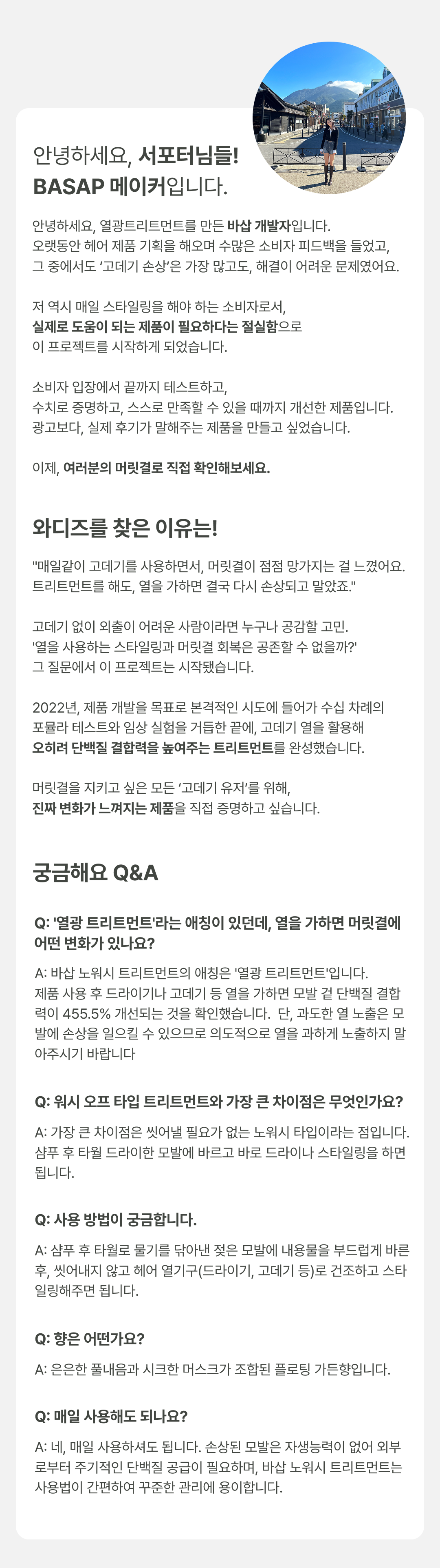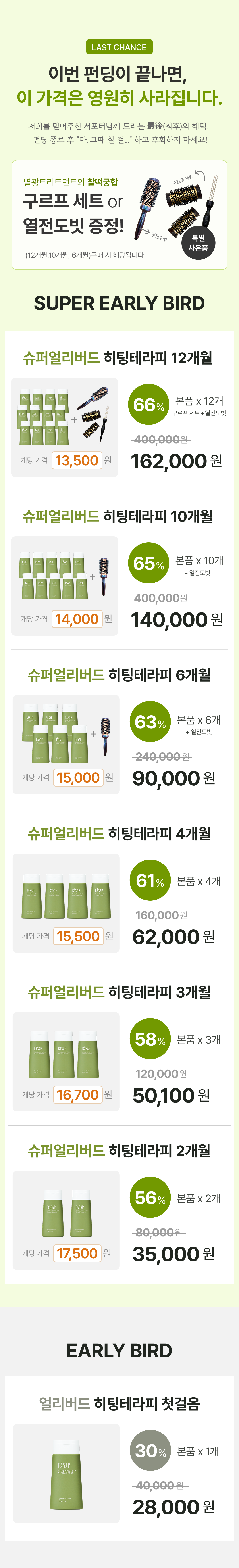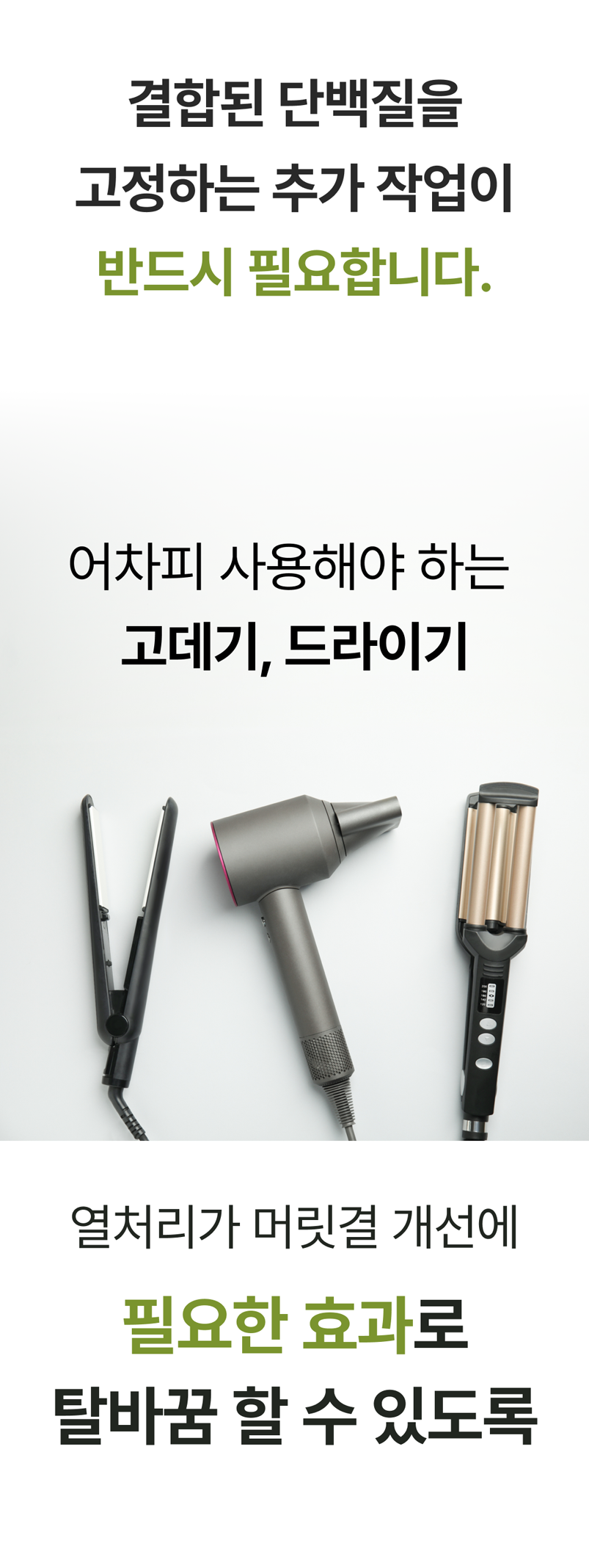 1. 🔥 열광 트리트먼트 - 열에 반응해 단백질 결합력 450% 이상 향상 2. 💇♀️ 고데기 전용 헤어케어 - 고데기 사용 시 머릿결 손상 방지 및 개선 3. 🎁 슈퍼얼리버드 할인 패키지 - 기간별 최대 66% 할인과 헤어 브러쉬 세트 포함