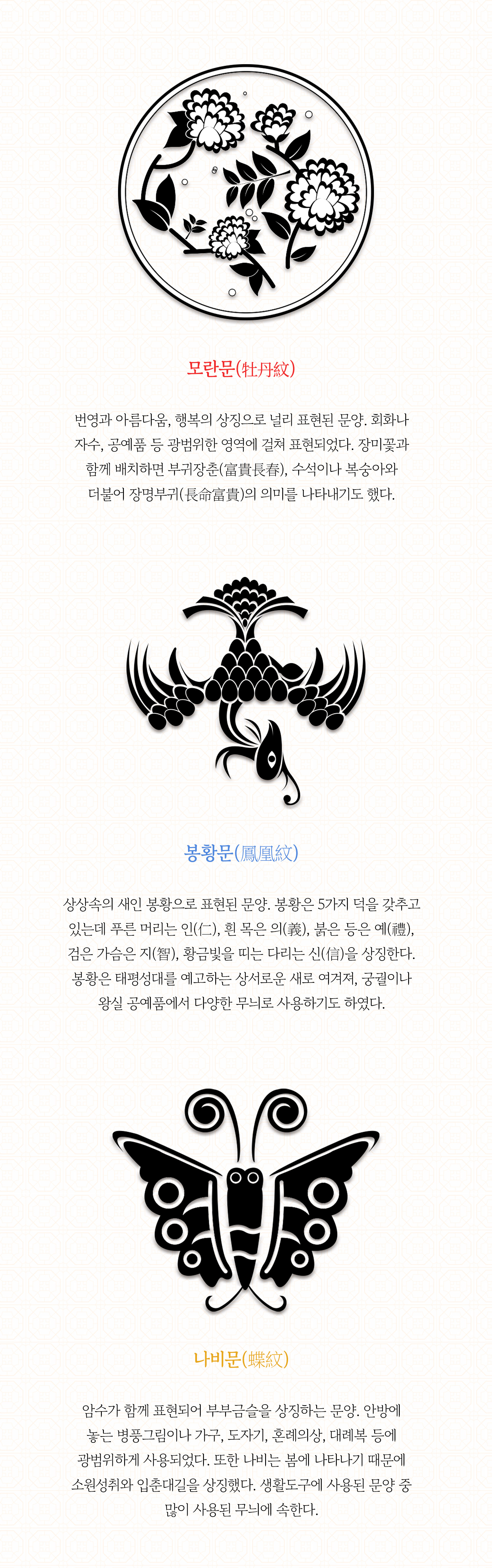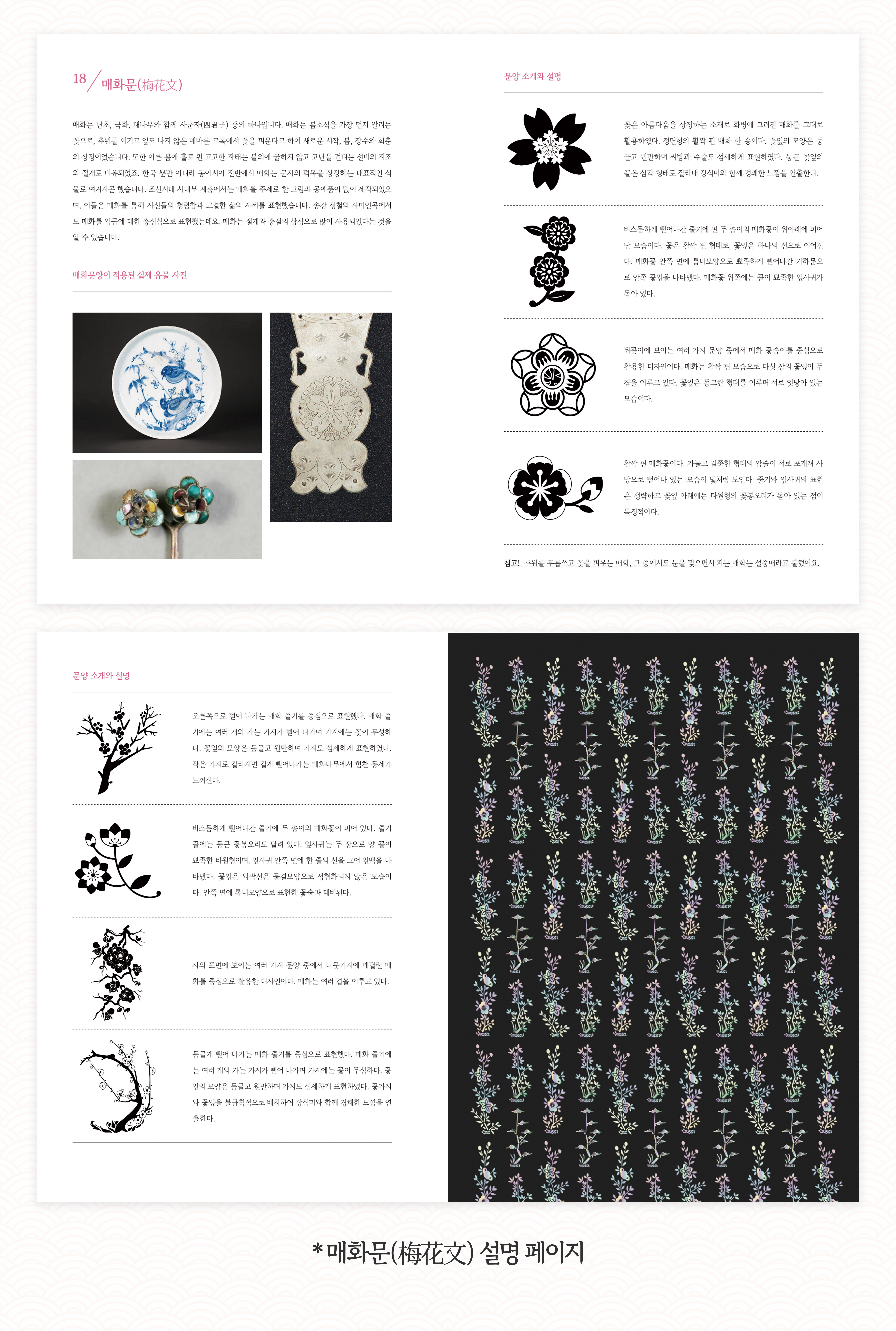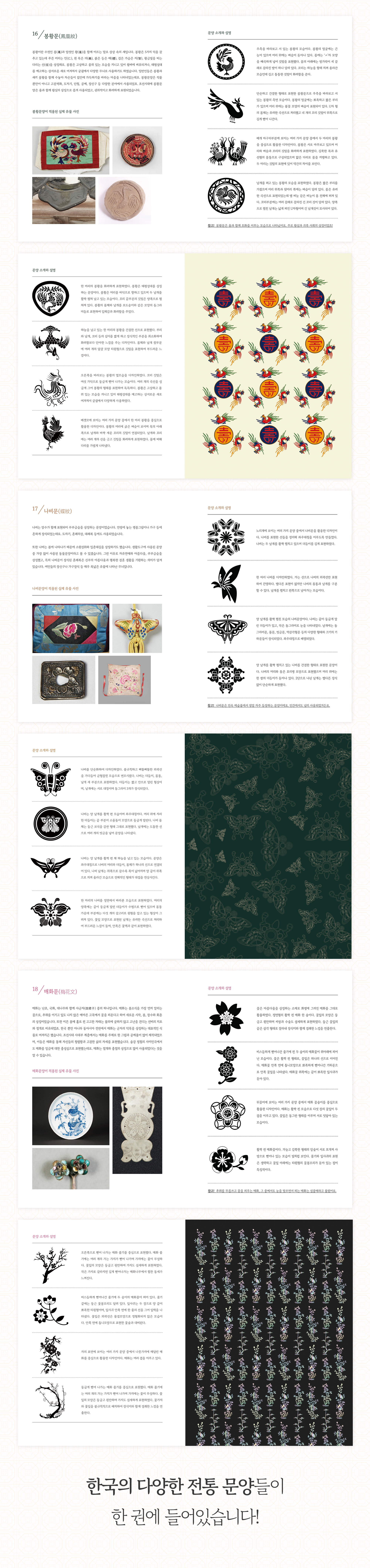 봉황문, 연꽃문, 매화문, 거북문, 사슴문, 인동문 등 다양한 한국의 빛나는 전통 문양을 한 권에!