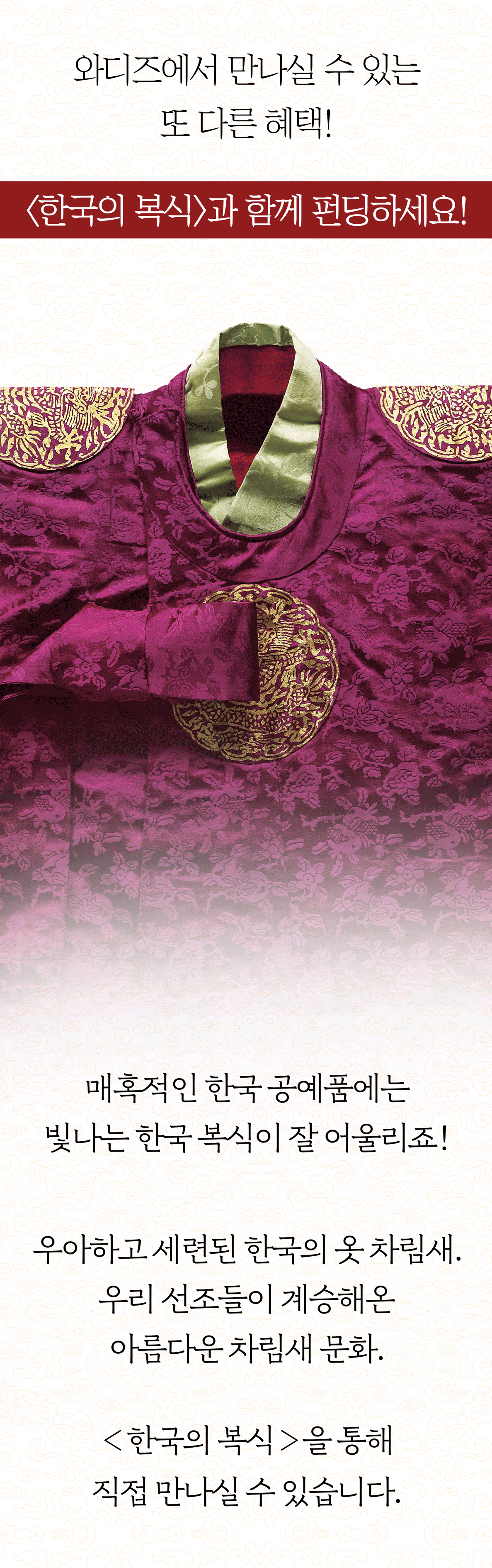 여러분도 한국 복식의 아름다운 숨결을 직접 느껴보실 수 있습니다.