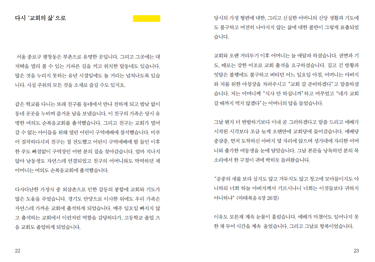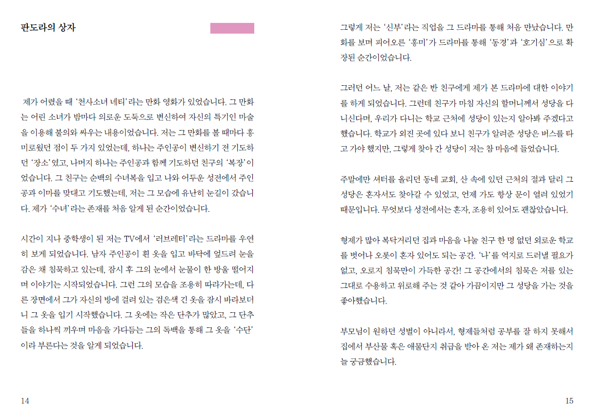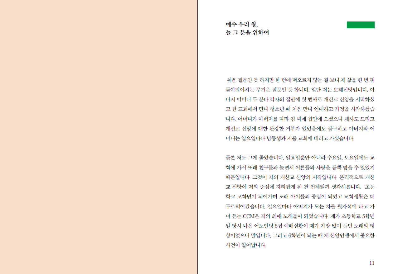 거창한 종교적 이론보다는 반복되는 일상을 섞으며 기도하고 서로의 문화를 묻고 알아갔던 청년의 기록을 모아, 한 권의 책으로 묶어 세상에 내놓으려 합니다.