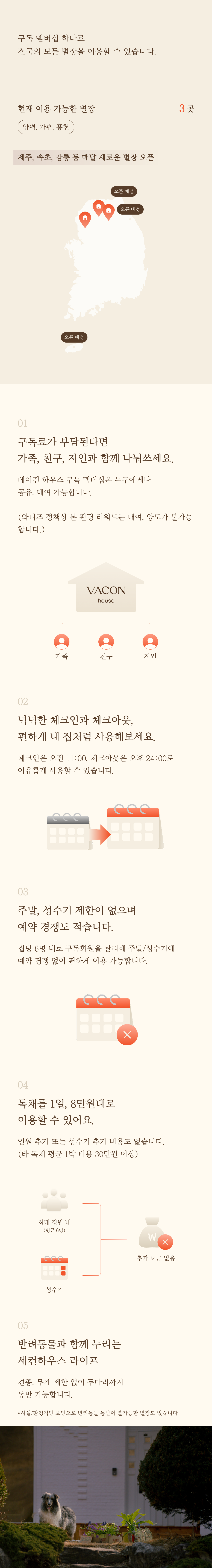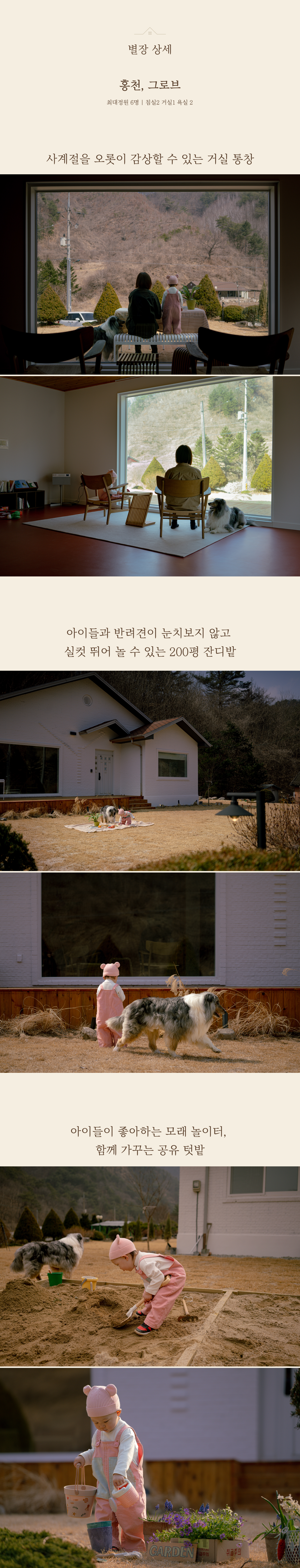 - 반려동물 동반은 현재 홍천 그로브와 양평 양조사의 집만 가능합니다.