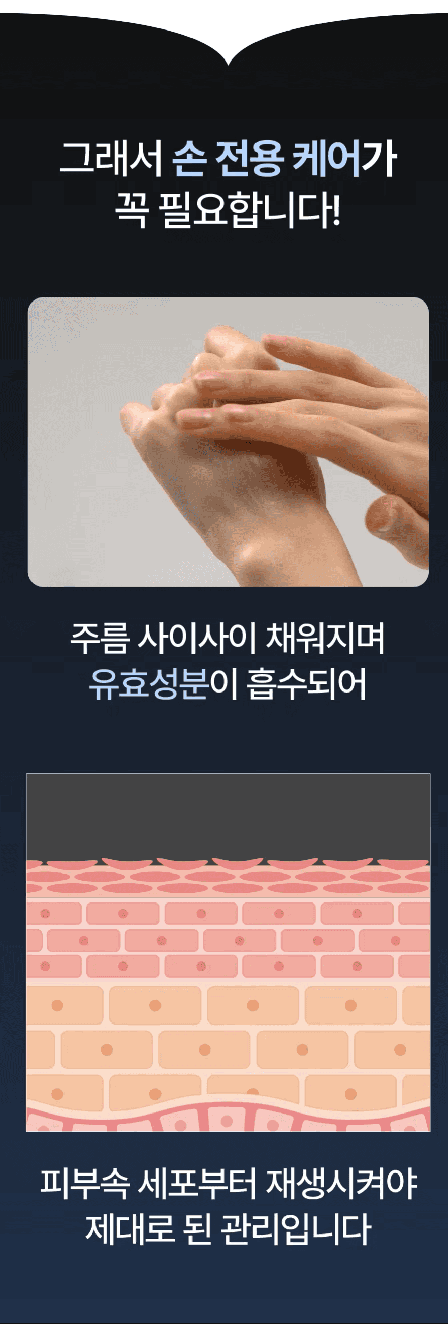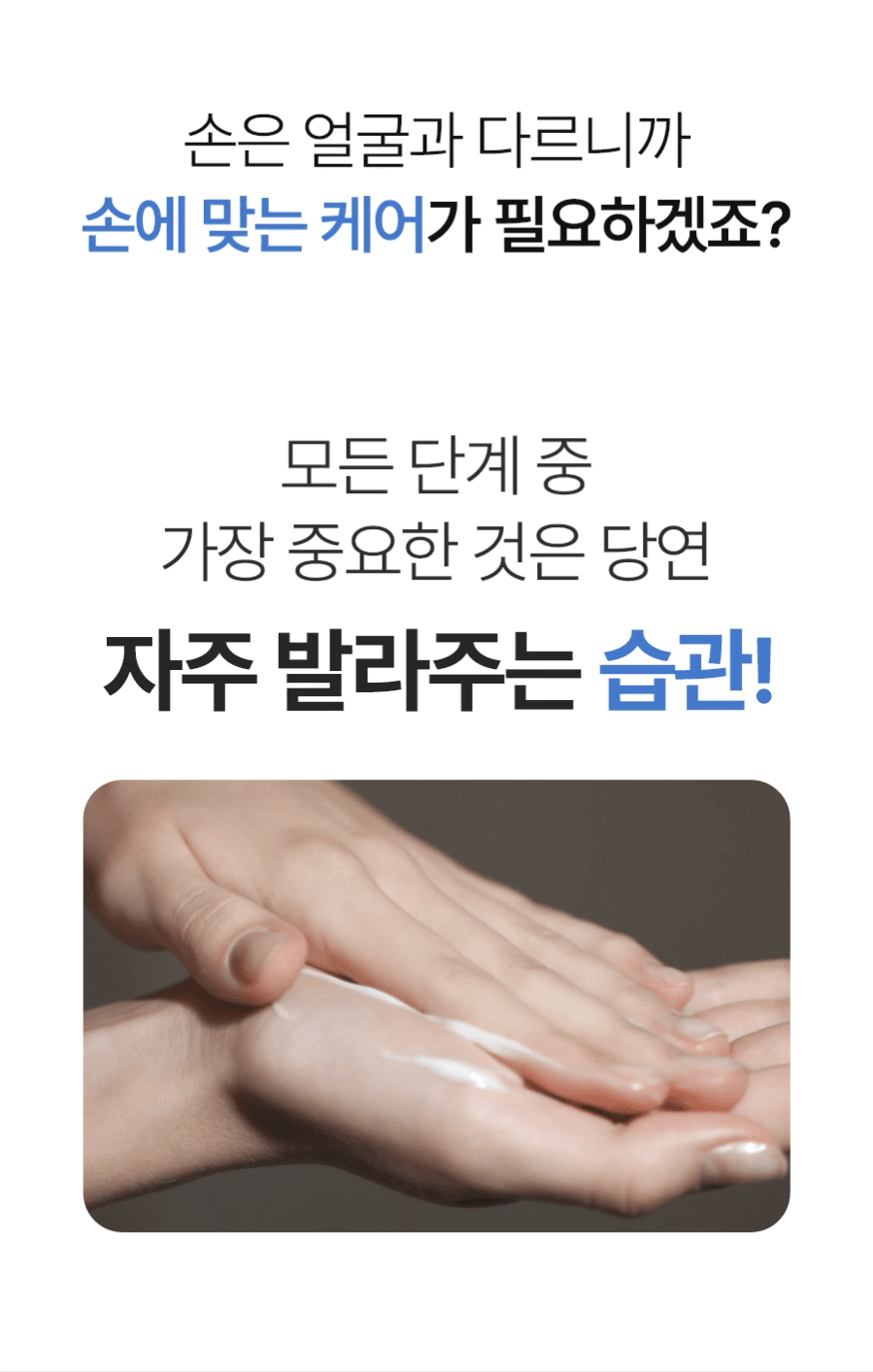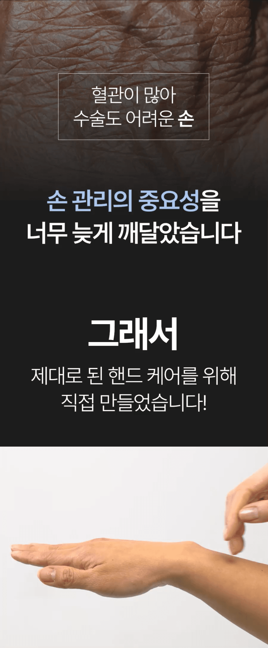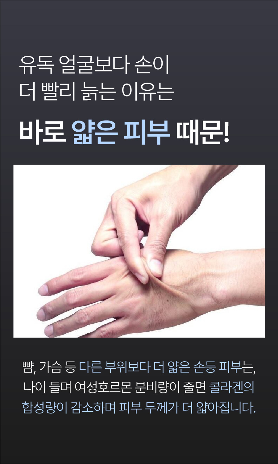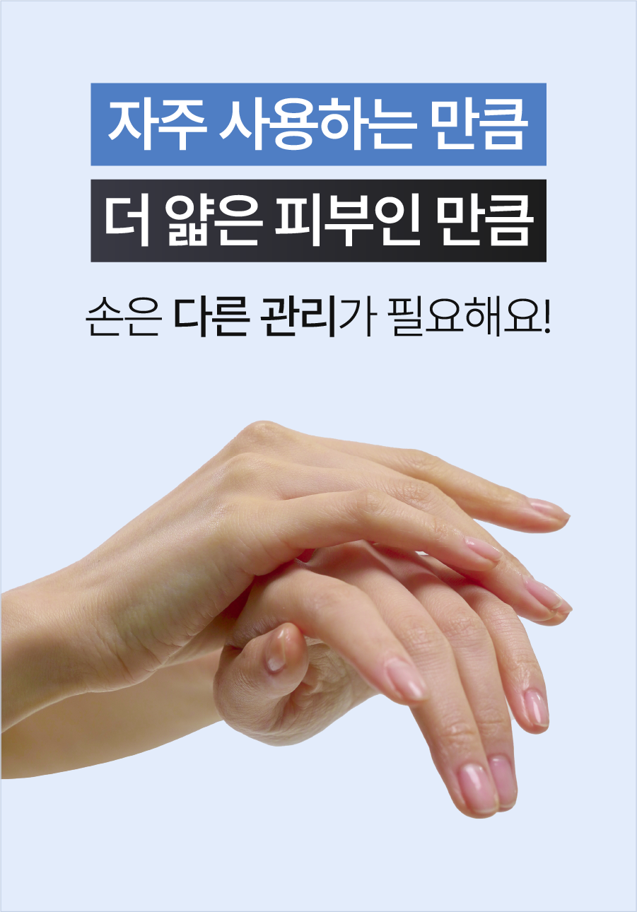손은 피부가 얇고 사용이 많은 만큼 노화가 빠르게 때문에 꼭 케어가 필요한 신체부위입니다.