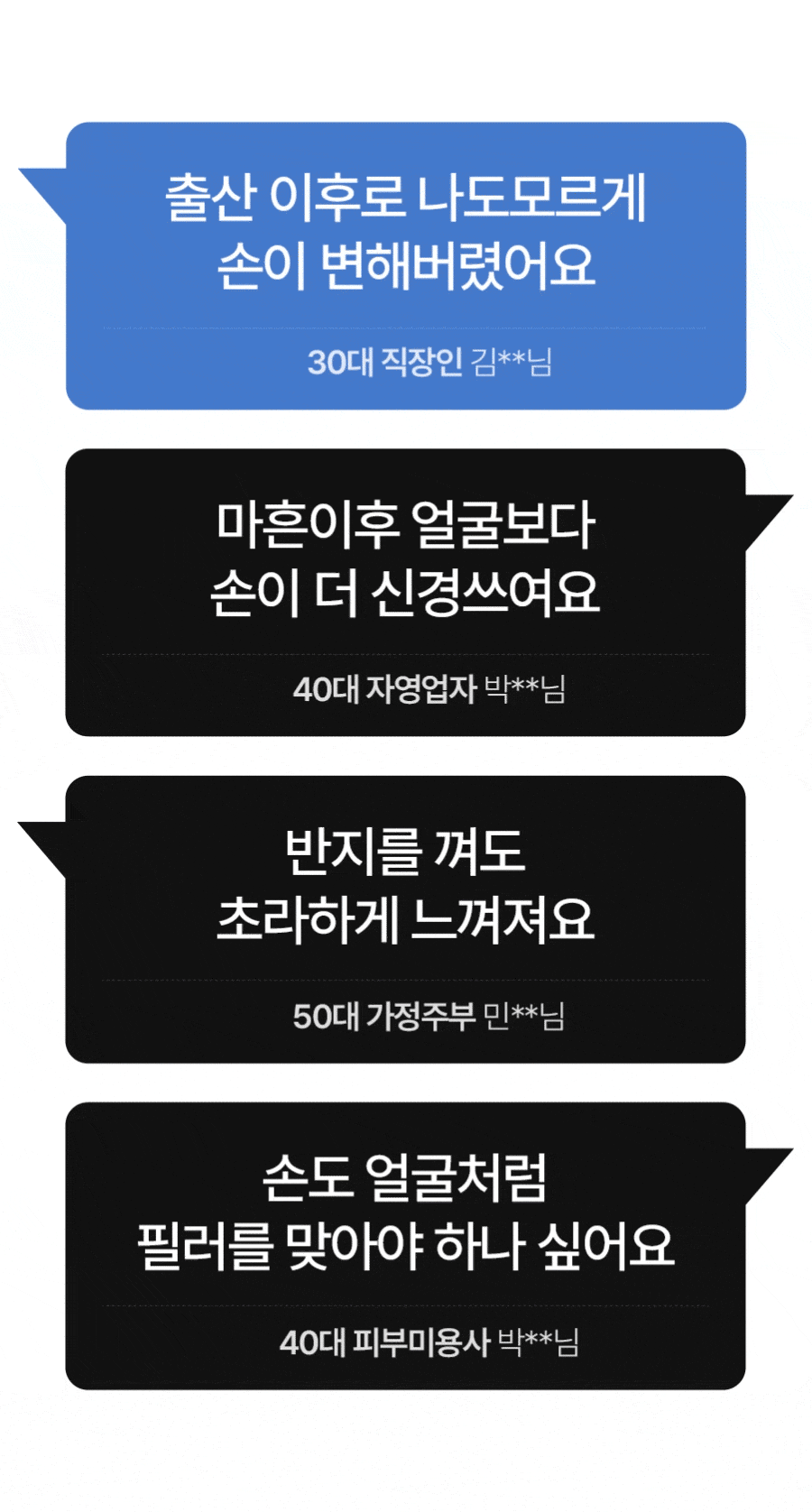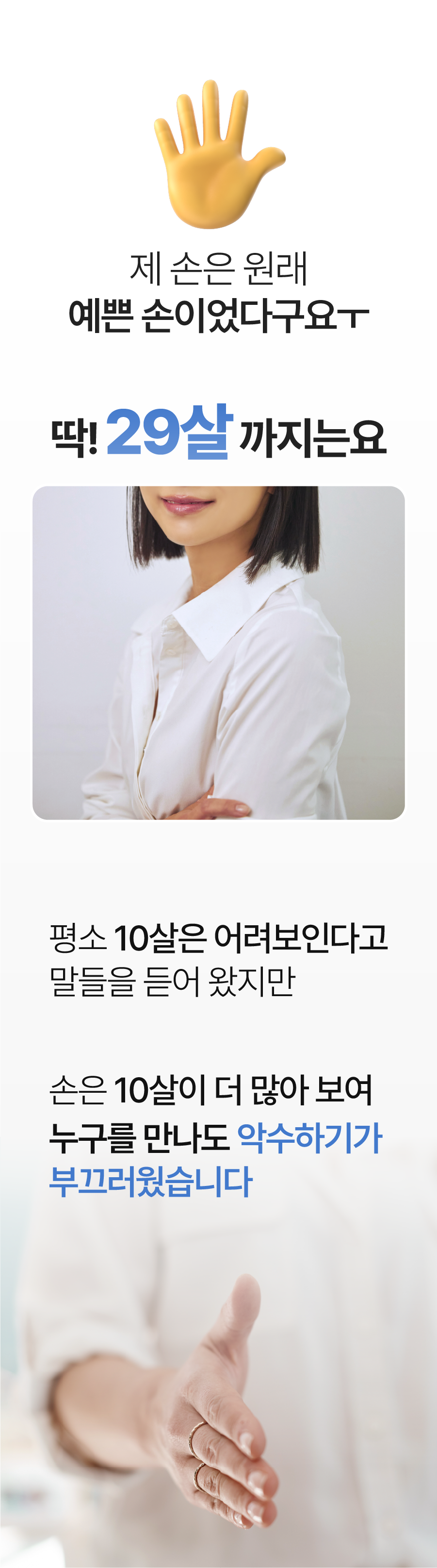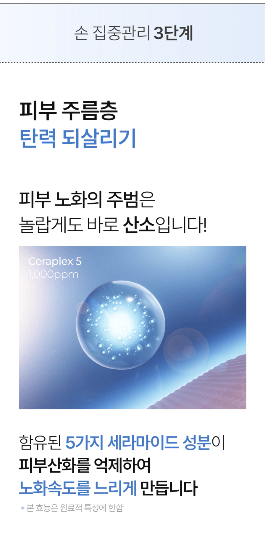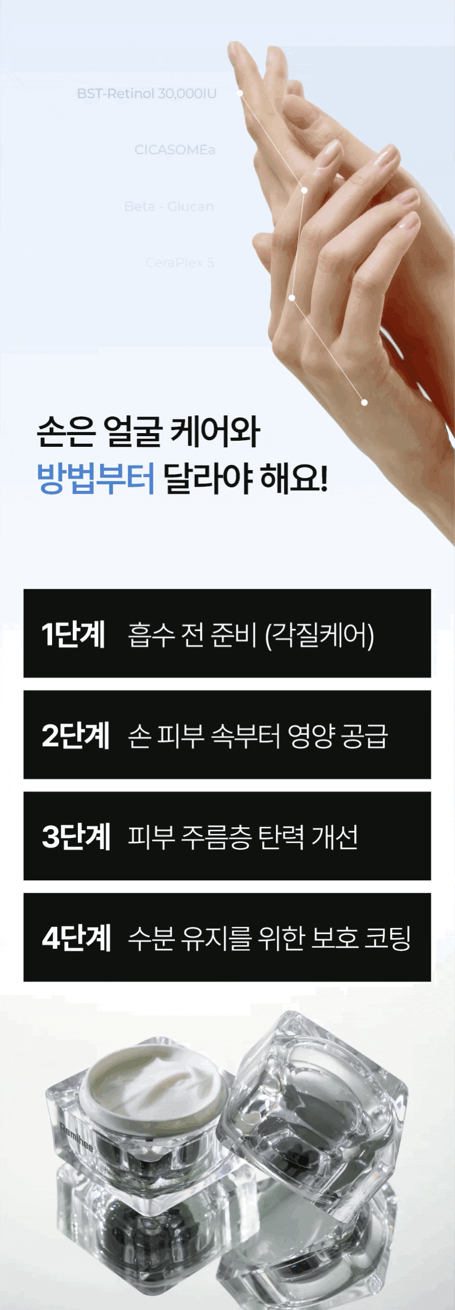 손은 피부가 얇고 사용이 많은 만큼 노화가 빠르게 때문에 꼭 케어가 필요한 신체부위입니다.