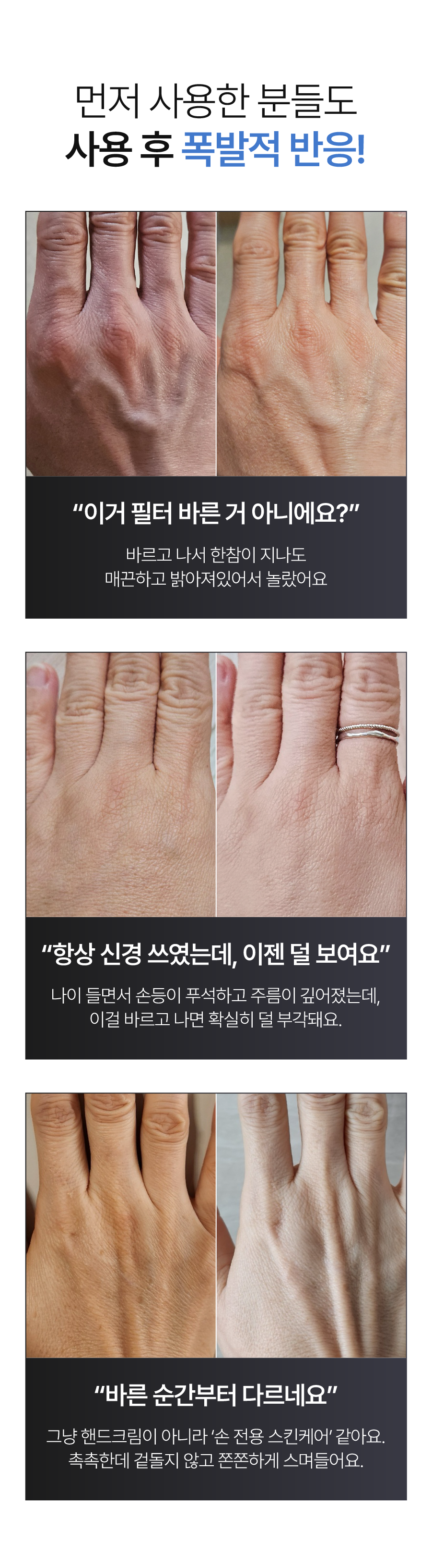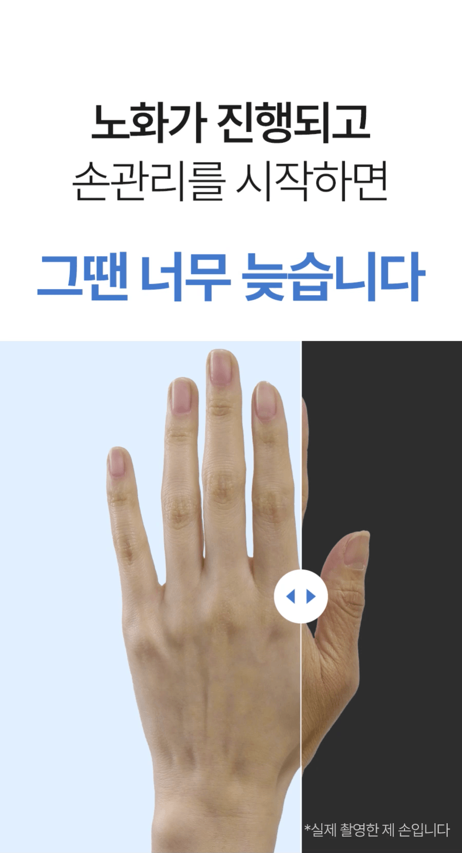 저 또한 그랬습니다. 피부에 많은 노력들을 해 왔지만 정작 손은 잘 관리하지 못하여 10년은 더 나이들어 보인다는 말도 듣고 했습니다.