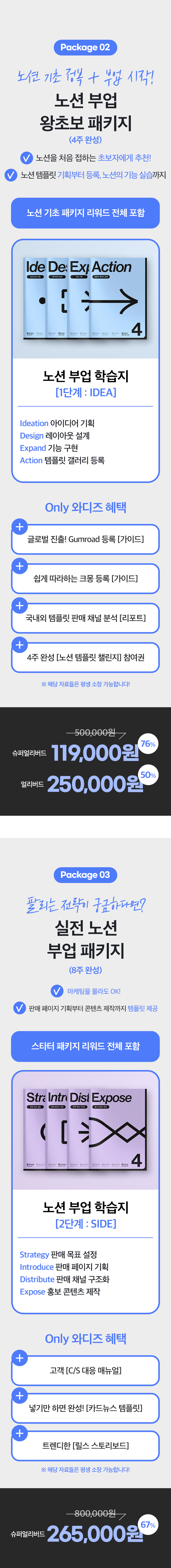 추후 실물 학습지를 제작하여 더 많은 학습 자료와 콘텐츠를 제공하고, 노션을 통해 수익을 창출할 수 있는 더욱 다양한 방안을 기획할 계획입니다. 와디즈 서포터 여러분의 지원으로 더욱 큰 가치를 제공하는 프로젝트로 발전시켜 나가겠습니다.