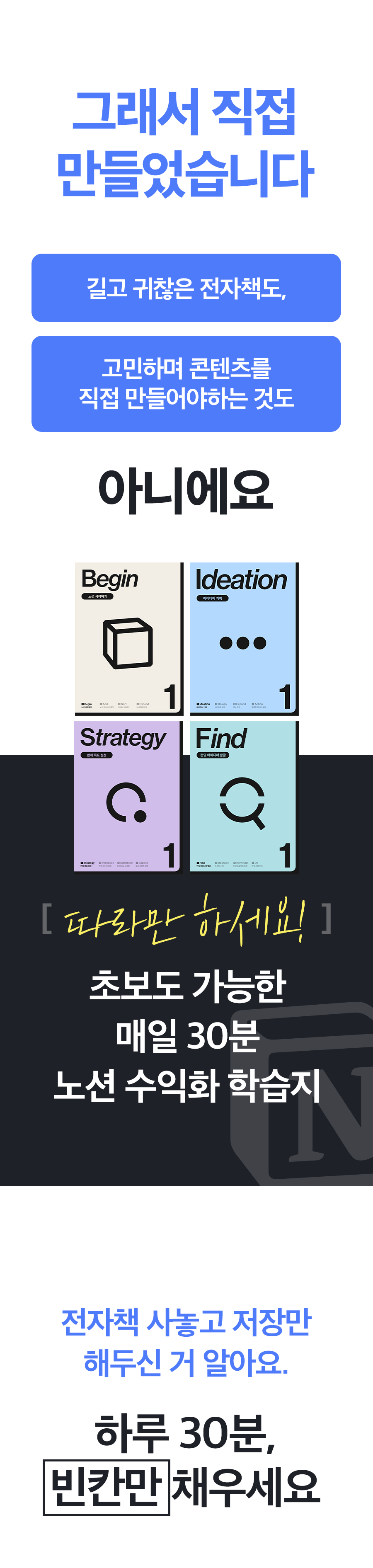 [4,263% 앵콜] 빈칸만 채우면 완성되는 노션 템플릿 제작법! 하루 30분, 숙제하듯 하루 분량을 채워나가면 4주 만에 완성되는 노션 템플릿으로 수익화까지! 초보자도 문제없어요