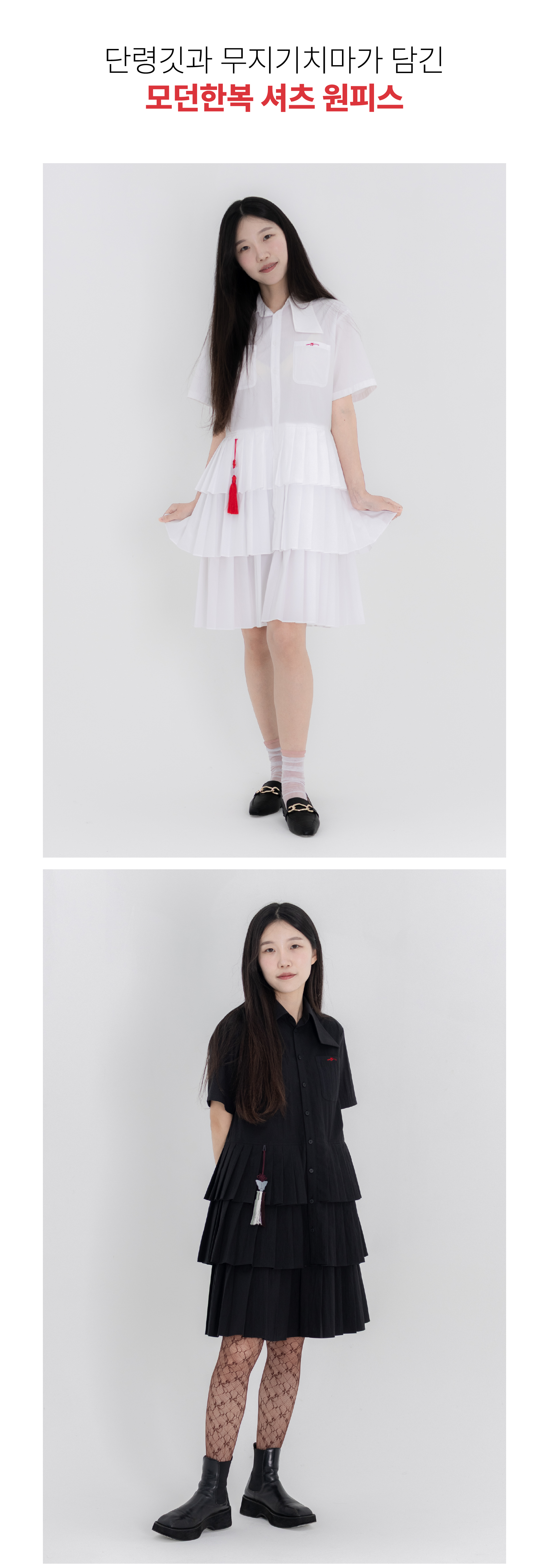 1. 👗 길이 조절 셔츠 원피스 - 2가지 스타일링 가능한 생활한복 셔츠 원피스 2. 🌿 고급미와 편안함 조화 - 단령깃과 무지기치마로 고급스러움과 편안함 제공 3. 🎨 2컬러 선택 가능 - 취향에 맞는 2가지 컬러로 만나볼 수 있음