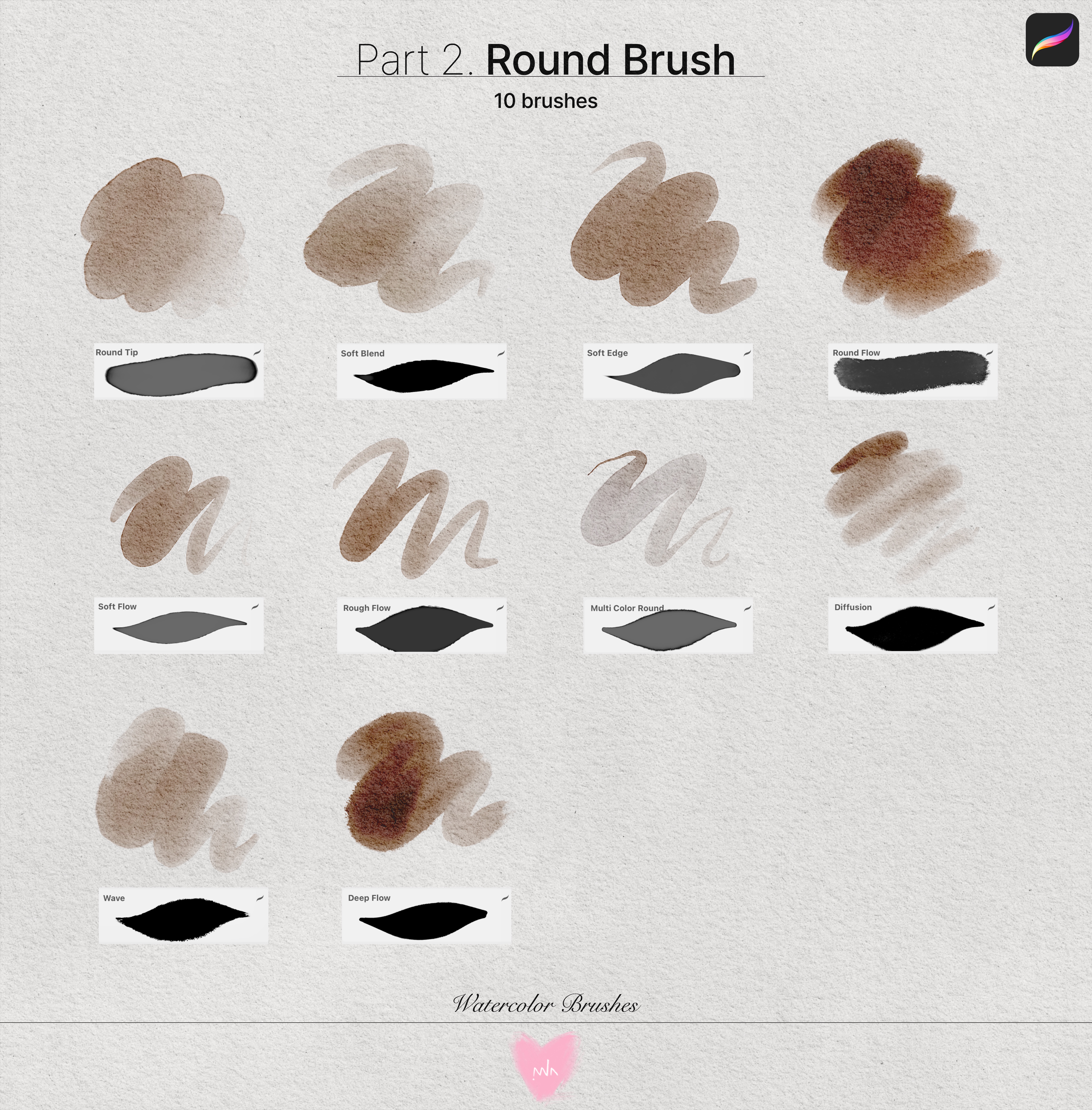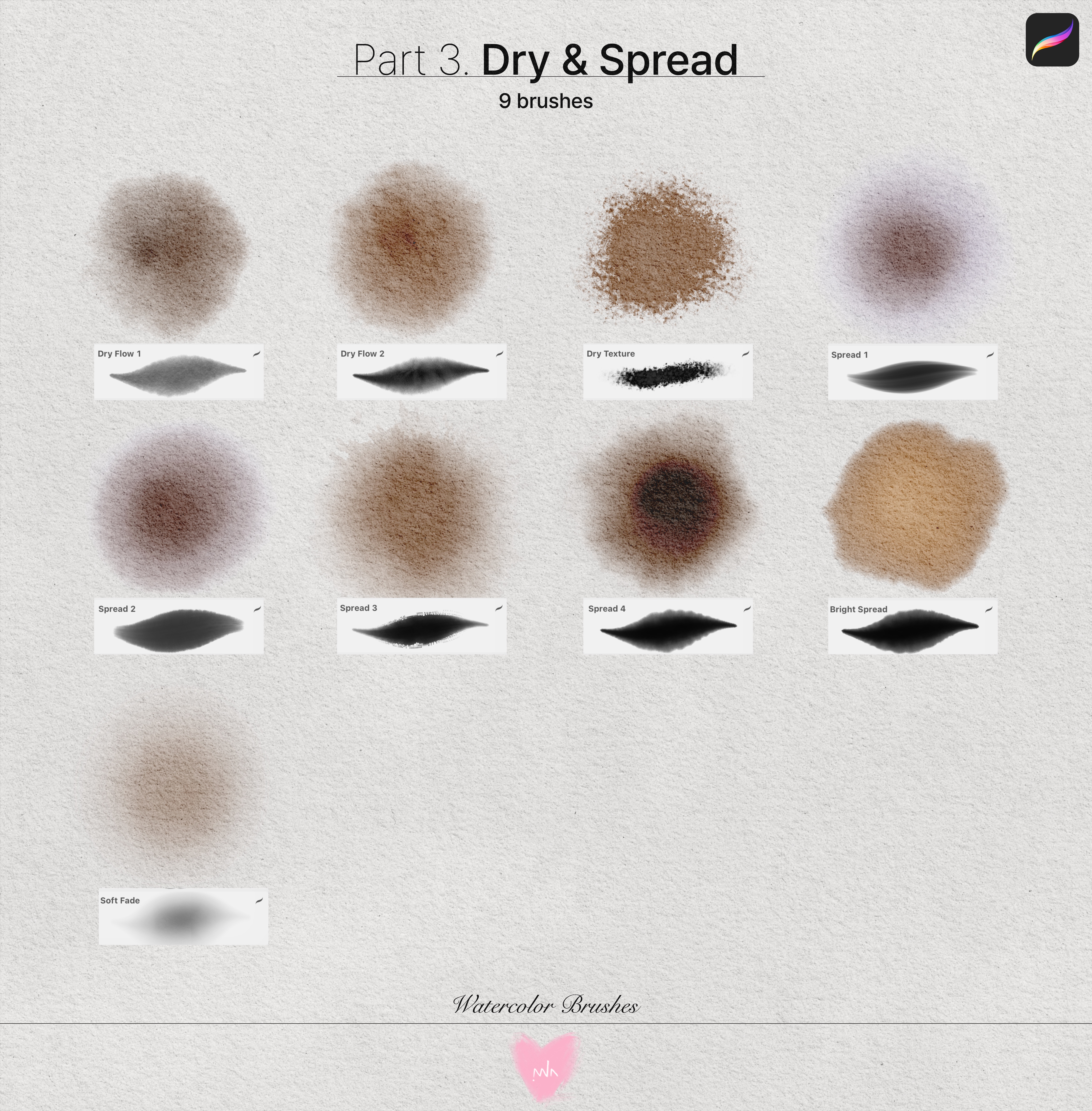 부드러운 질감과 자연스러운 블렌딩이 특징인 브러시들로 구성한 파트입니다.