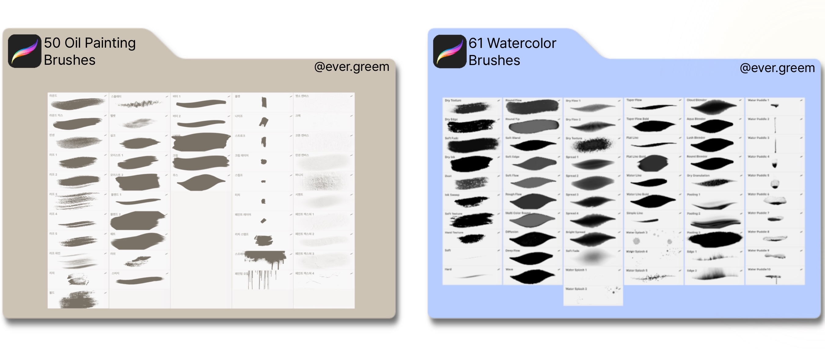 유화 브러시 50종 + 수채화 브러시 61종