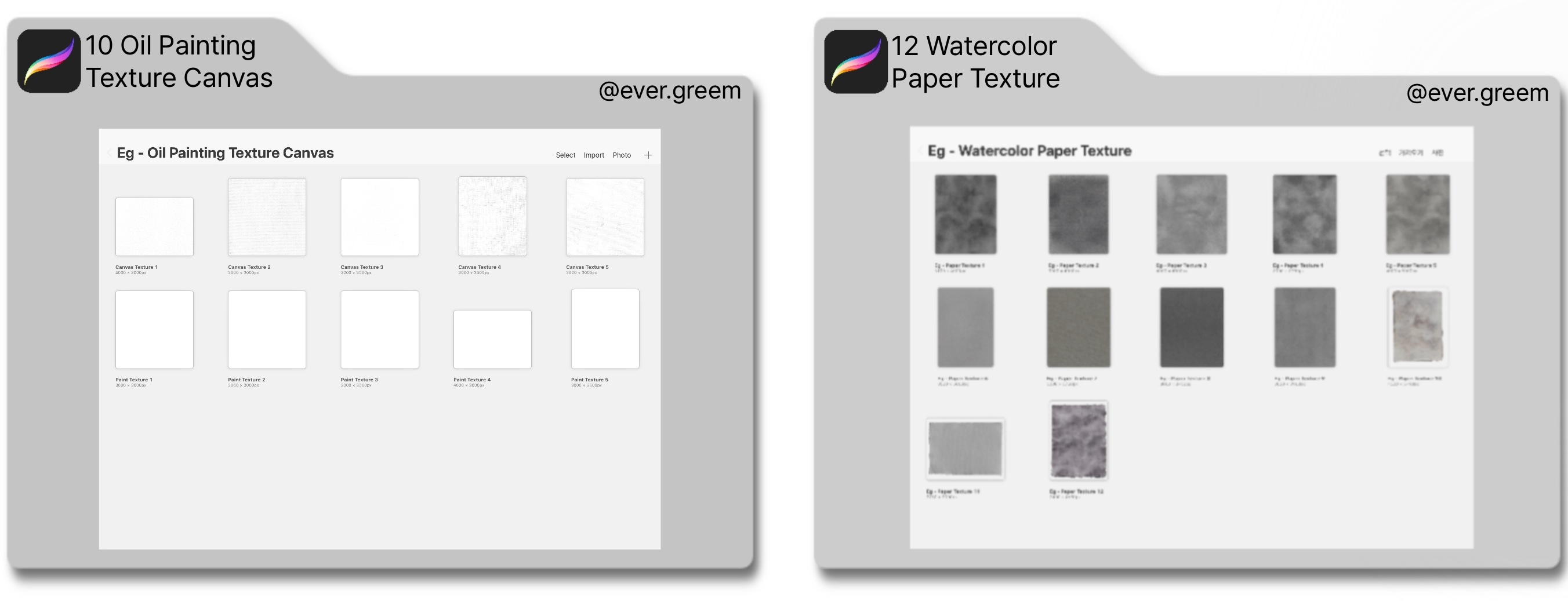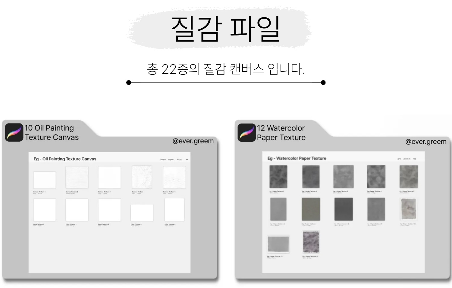 유화 캔버스 질감 10종 + 수채화 종이 질감 12종