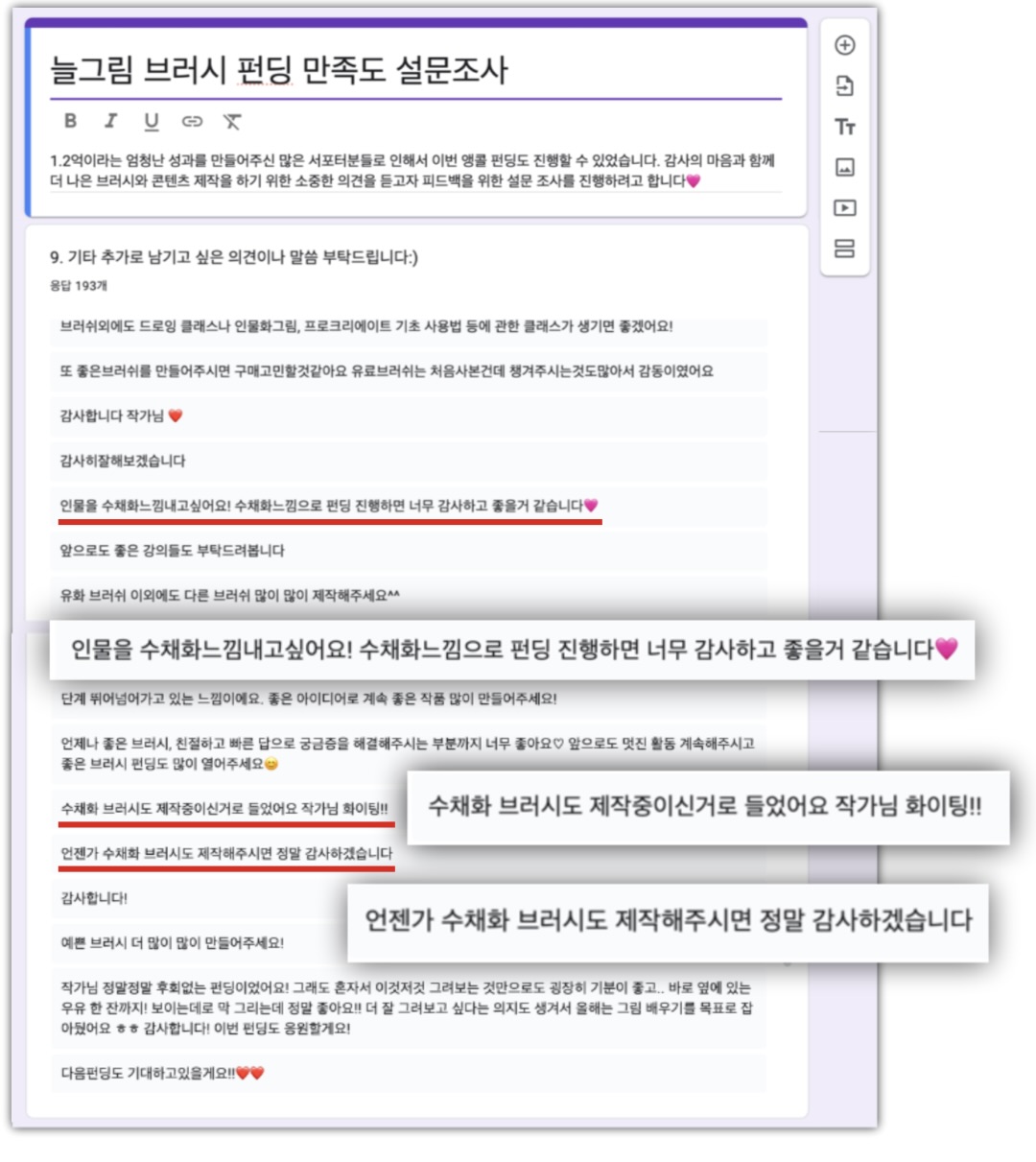 지난 펀딩 서포터분들께 설문조사를 진행했을 때에도