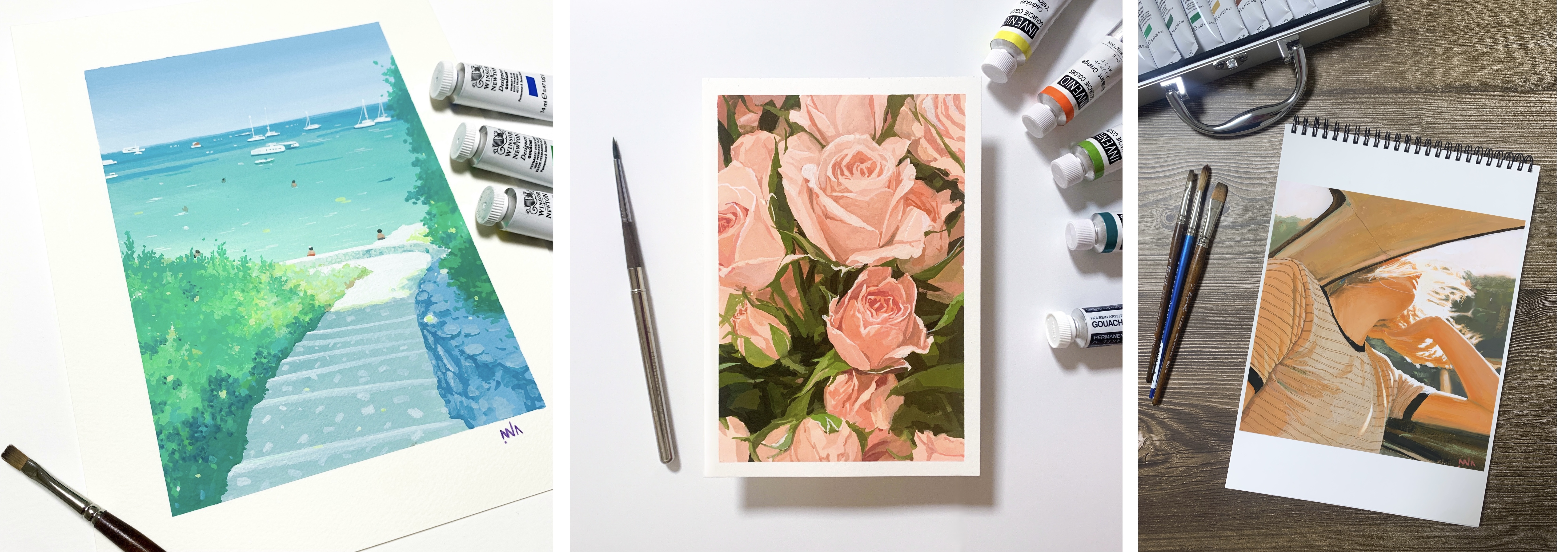 수채화를 비롯해서 유화, 과슈 등의 다양한 물감 재료로 그림을 그려오고 있기 때문에
