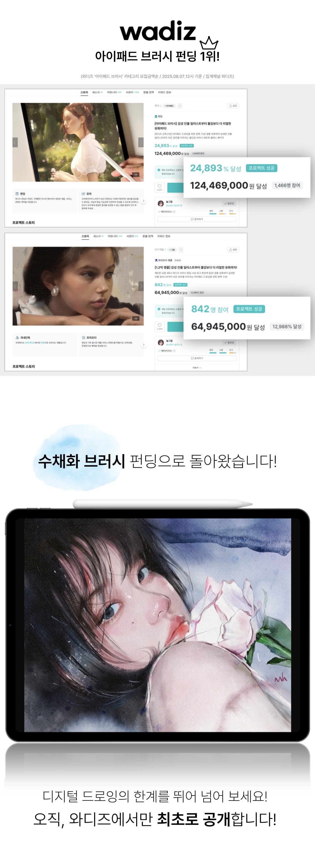 그래서 이번 프로젝트도, 이전보다 더 열심히 준비한 모습으로 다시 와디즈에서 선보이게 되었습니다.