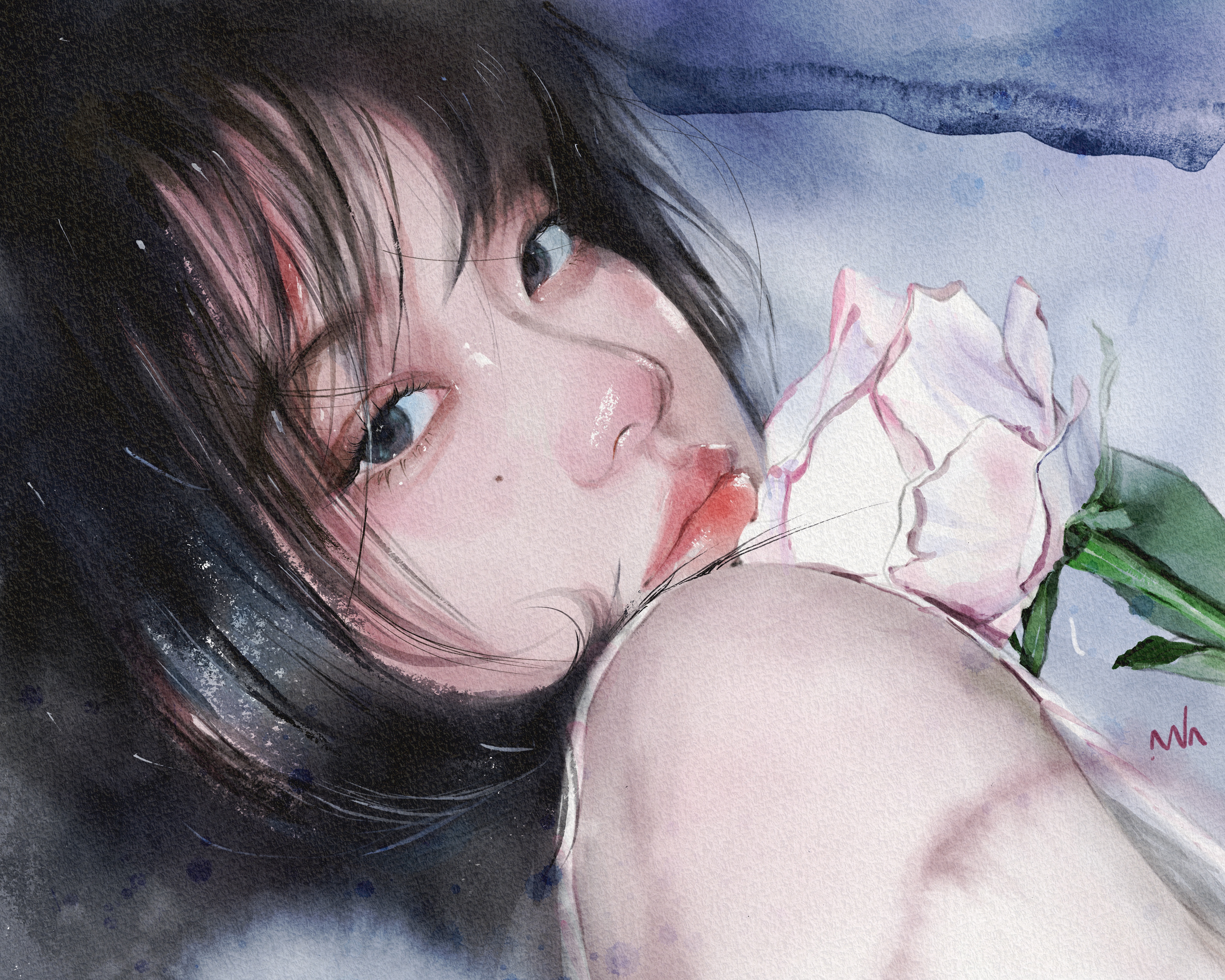 그래뉼레이션, 물 맺힘 등 수채화의 다양한 효과를 모두 담은 구성입니다.