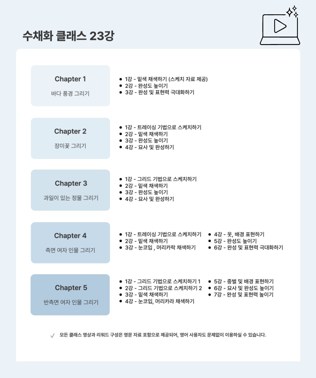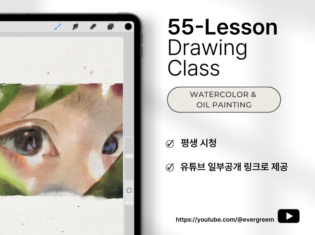 기초 클래스 6강 + 유화 클래스 26강 + 수채화 클래스 23강