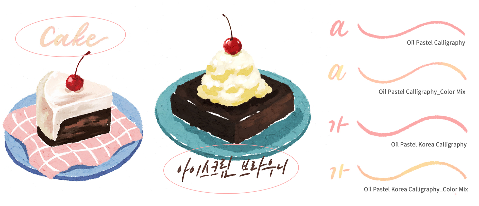 5강 / 오일파스텔 브러시 — 미니 초코 케이크 일러스트