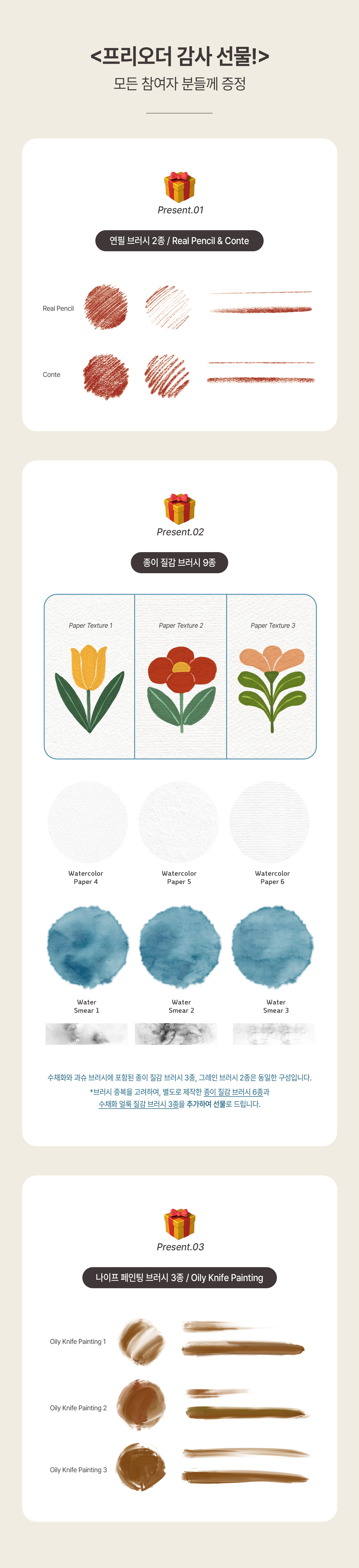 이번 프리오더에서는 브러시 튜토리얼을 담은 미니클래스도 특별히 준비했습니다!